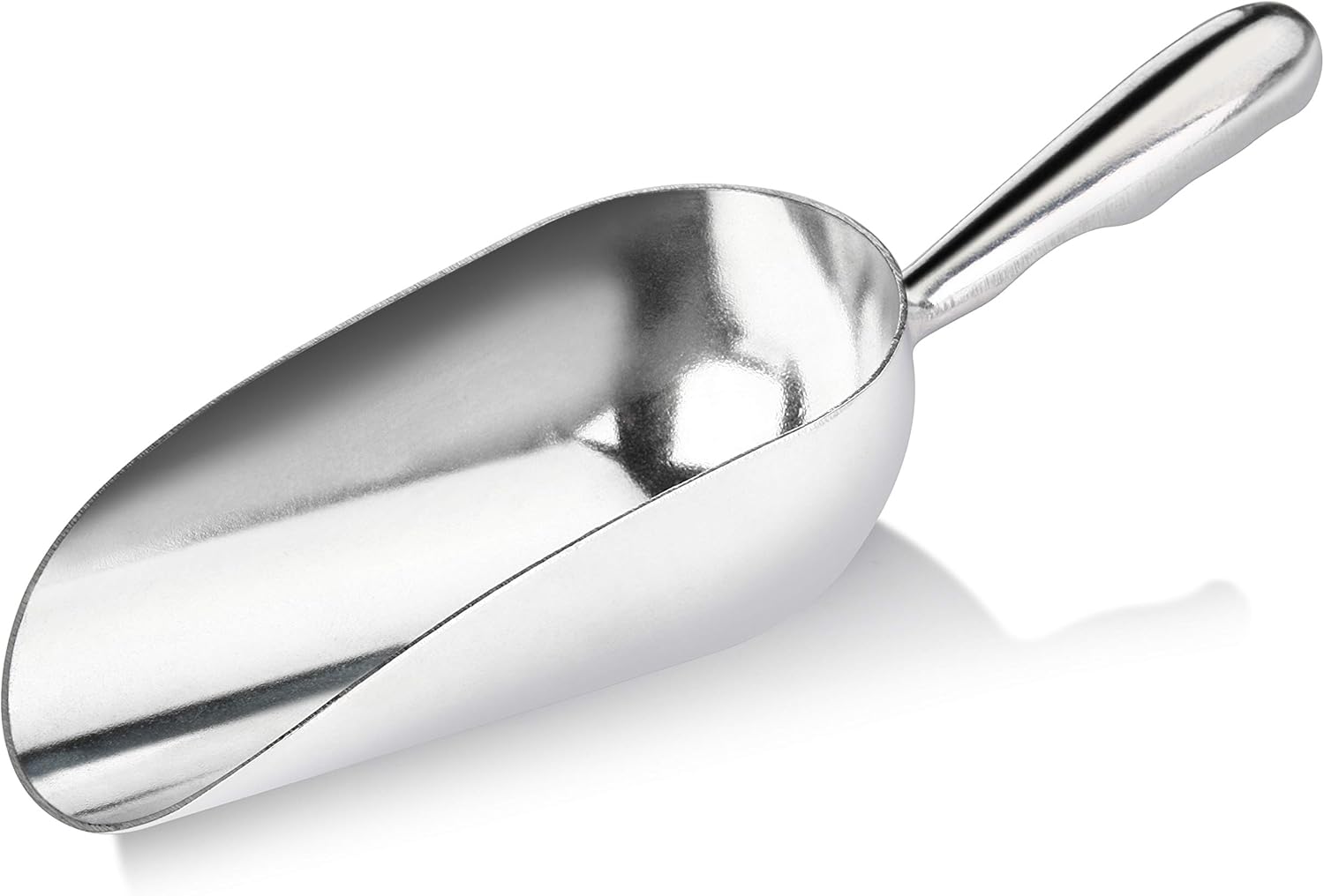 - Commercial-Grade Aluminum utility scoop great for ice, sugar, flour, popcorn, and candy.