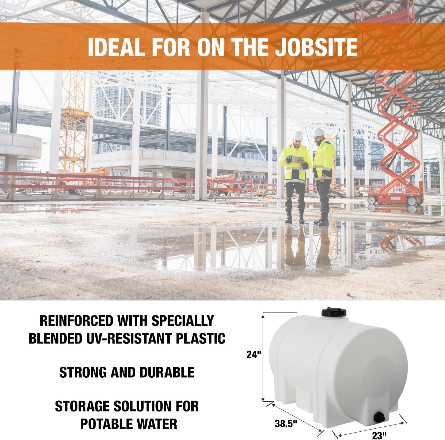 - Stores non-flammable liquids such as potable water, agricultural chemicals, and industrial fluids; ideal for farm, camping, landscaping, and job site liquid transport
