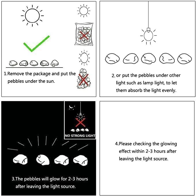 - No Batteries Required to Shine: These glow in the dark stones charge using sunlight or LED light. Simply let them absorb light for 1-2 hours, and they will glow for an extended period. A quick LED test can be done beforehand to check their glowing effect