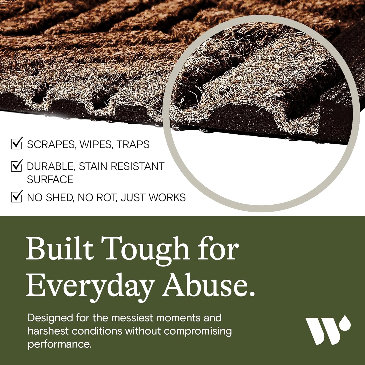 - EASY CARE AND MAINTENANCE: This heavy-duty entry mat requires minimal upkeep—just shake, vacuum, or scrub off debris, rinse with a hose, and let it air dry. Built to endure, its durable design makes it a long-lasting, all-weather door mat for your home.