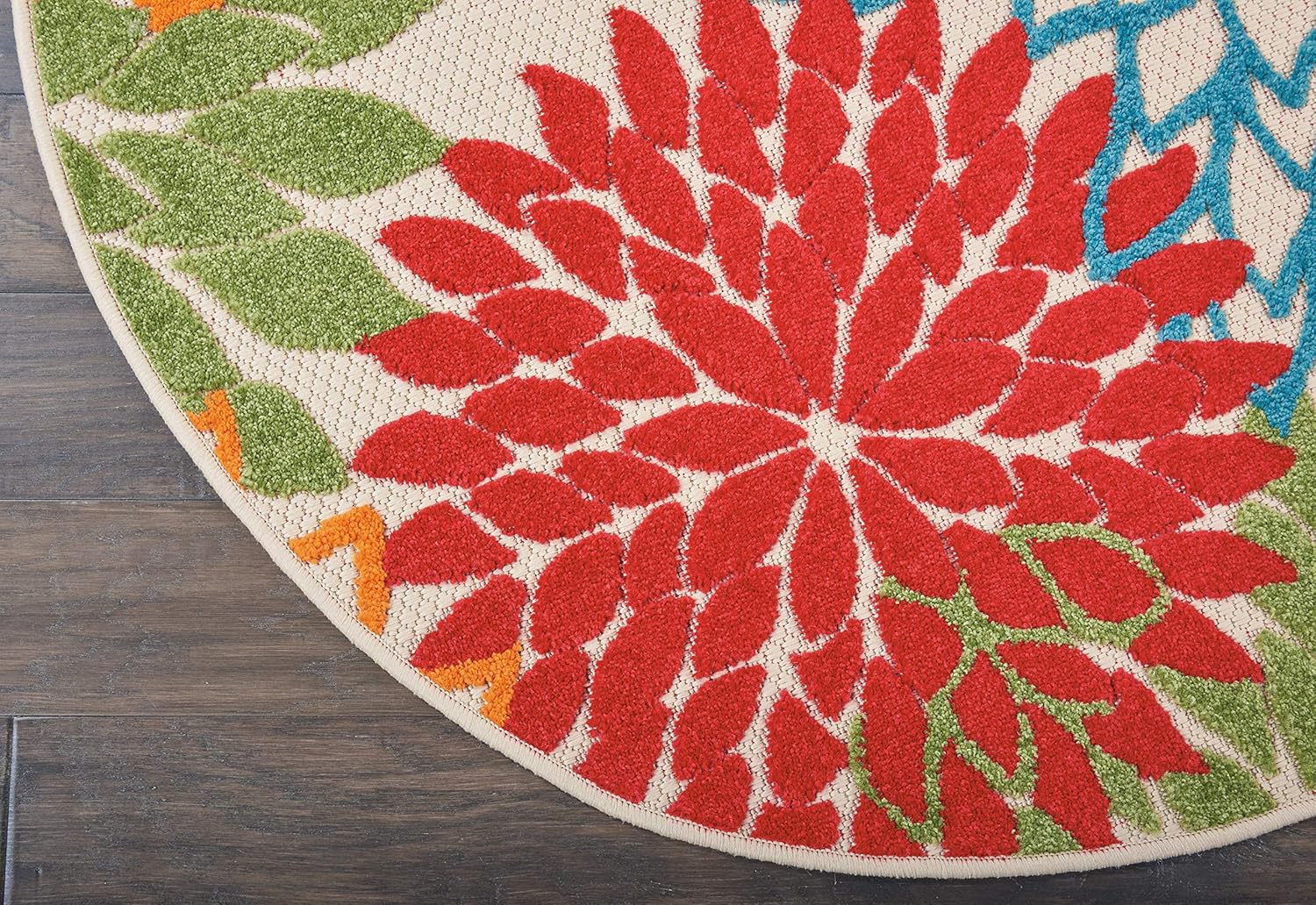 Nourison Aloha Indoor/Outdoor Green 4' x Round Area-Rug, Tropical, Botanical, Easy-Cleaning, Non Shedding, Bed Room, Living Room, Dining Room, Deck, Backyard, Patio (4 Round)