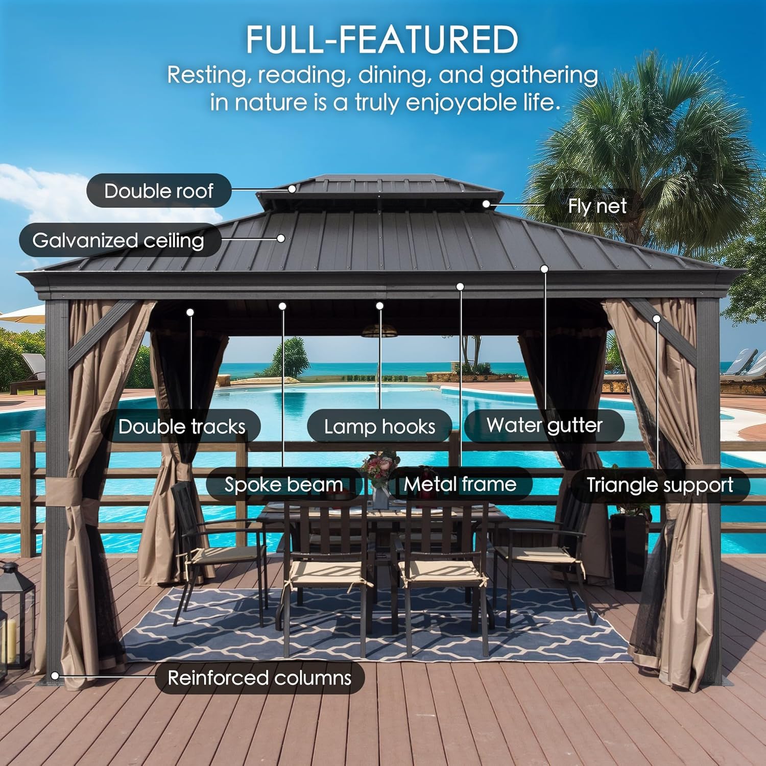 - ✅Perfect Size - Measuring 12' x 16', the gazebo offers ample space for you and your guests to relax and enjoy the outdoors.