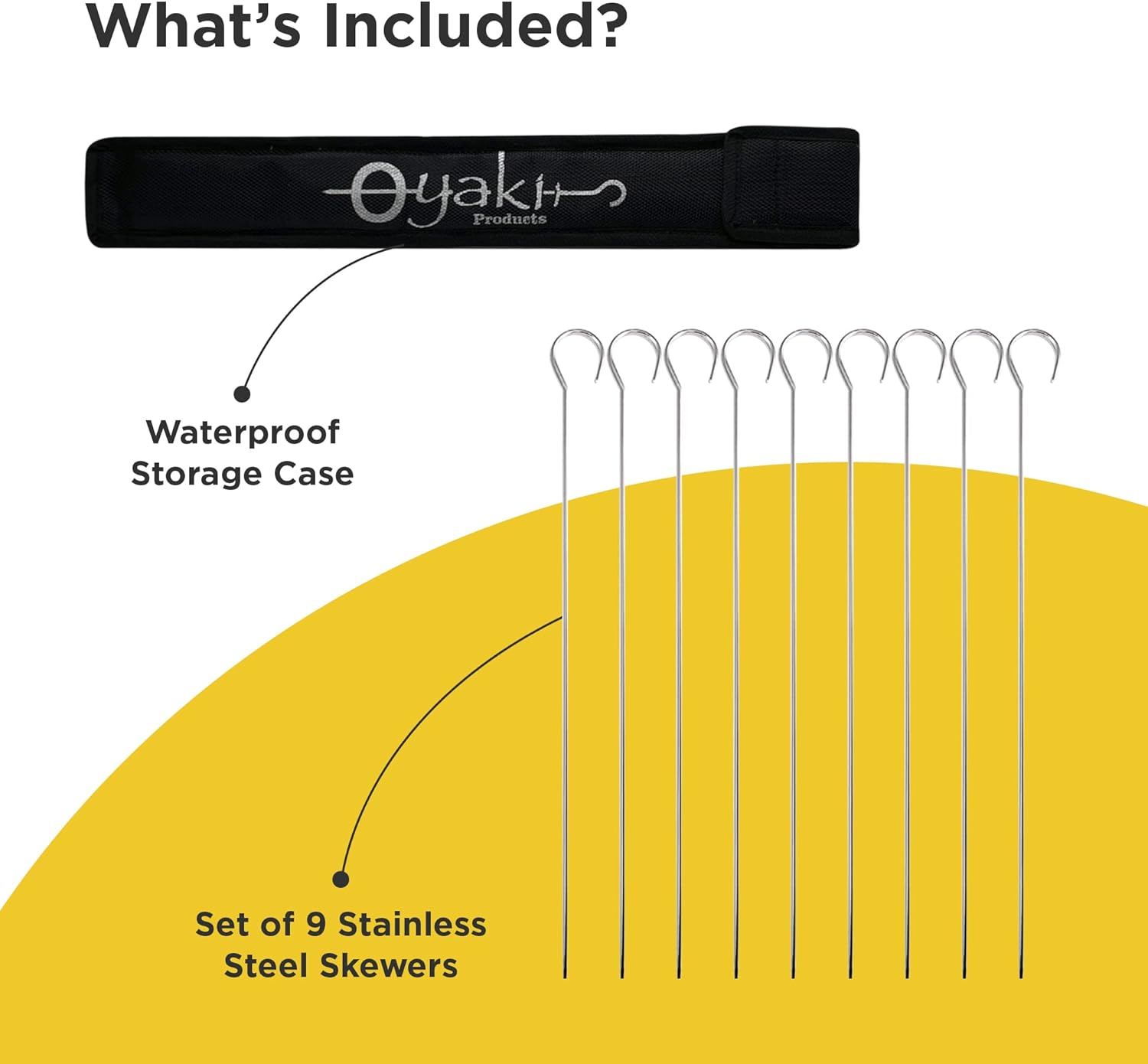 - STAINLESS STEEL BBQ SKEWERS FOR DURABILITY: O-Yaki’s metal skewers are made from durable stainless steel, ensuring they are resistant to rust and can withstand repeated use. These sturdy BBQ skewers won’t bend or break, providing a consistent grilling experience for meats, veggies, seafood, and more.
