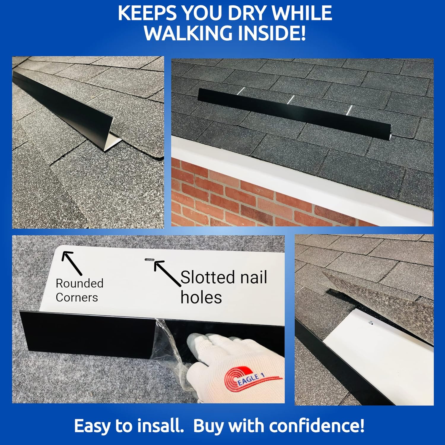 - {Versatile Utility} - Can be installed by anyone, regardless of experience. - For use over doorways, windows, chimneys, pipes, roof vents, or anywhere else you need to reduce the downpour.
