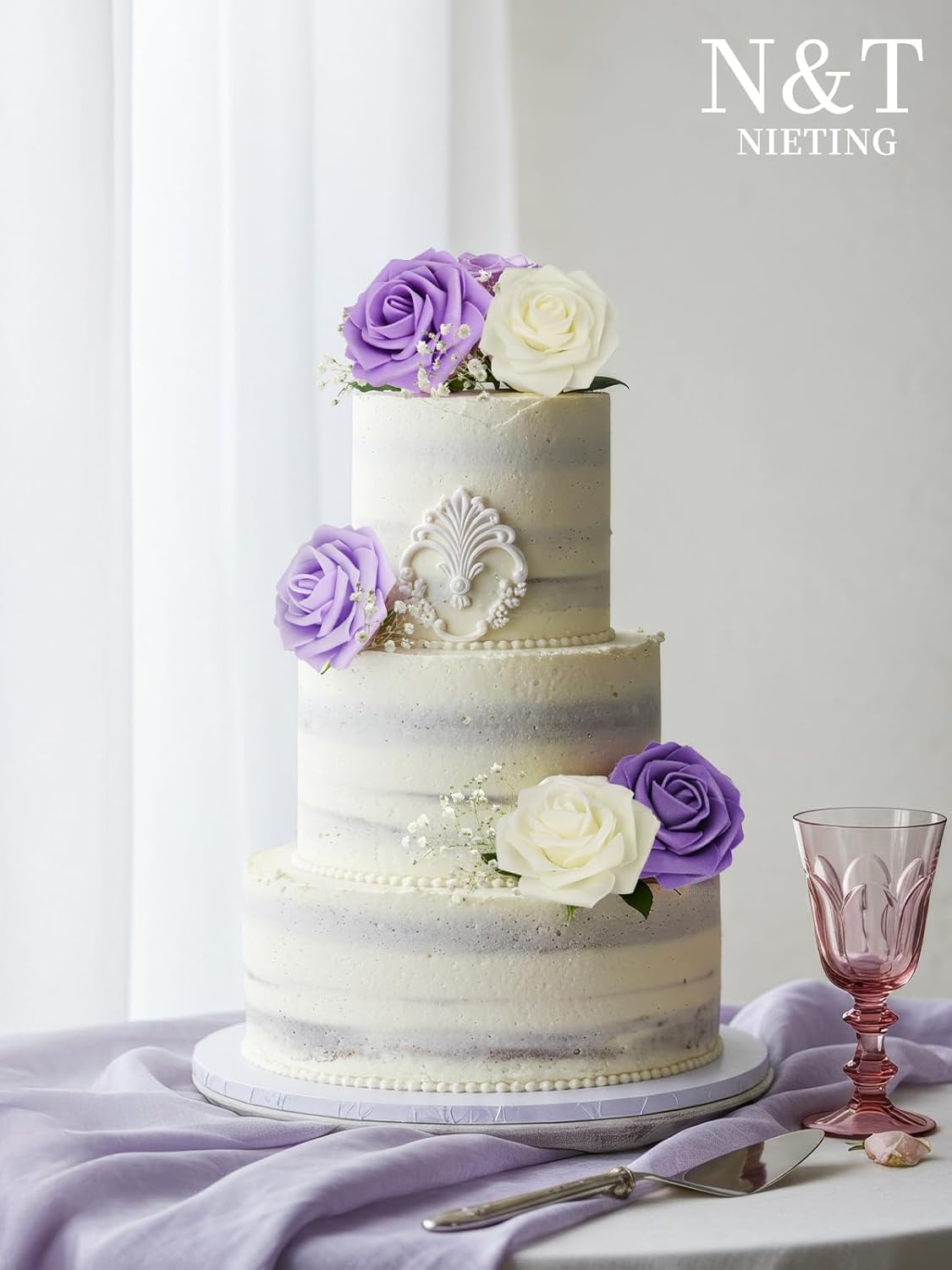 N&T NIETING Artificial Flowers, 25pcs Fake Flowers Rose with Stems Perfect for DIY Wedding Bridesmaid Bridal Bouquets Centerpieces Home Flower Arrangement Decoration, Series Purple