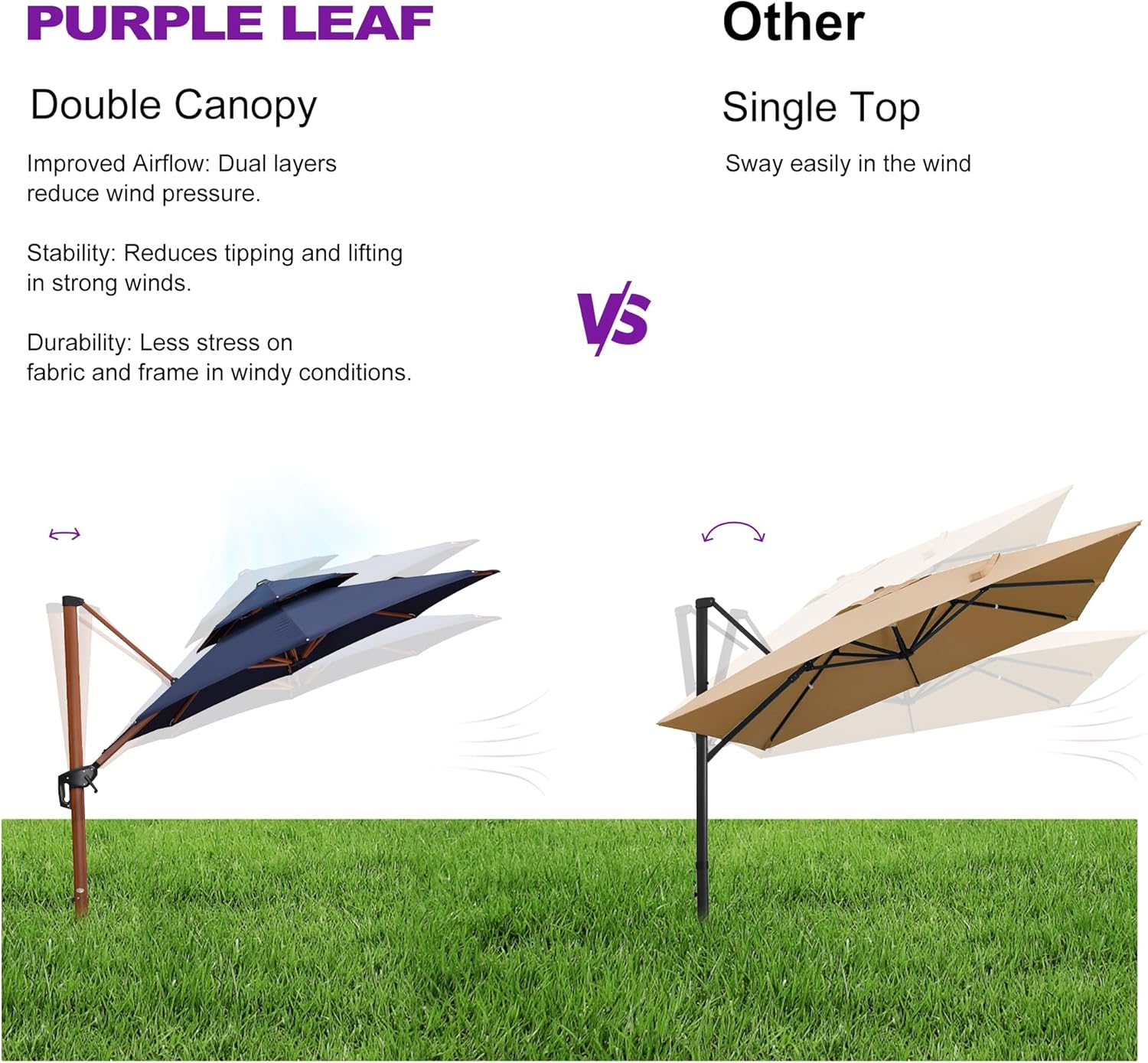 PURPLE LEAF 11ft Patio Umbrella Outdoor Round Umbrellas Large Cantilever Umbrella Windproof Offset Umbrellas Heavy Duty Sun Umbrella for Garden Deck Pool Patio, Navy Blue