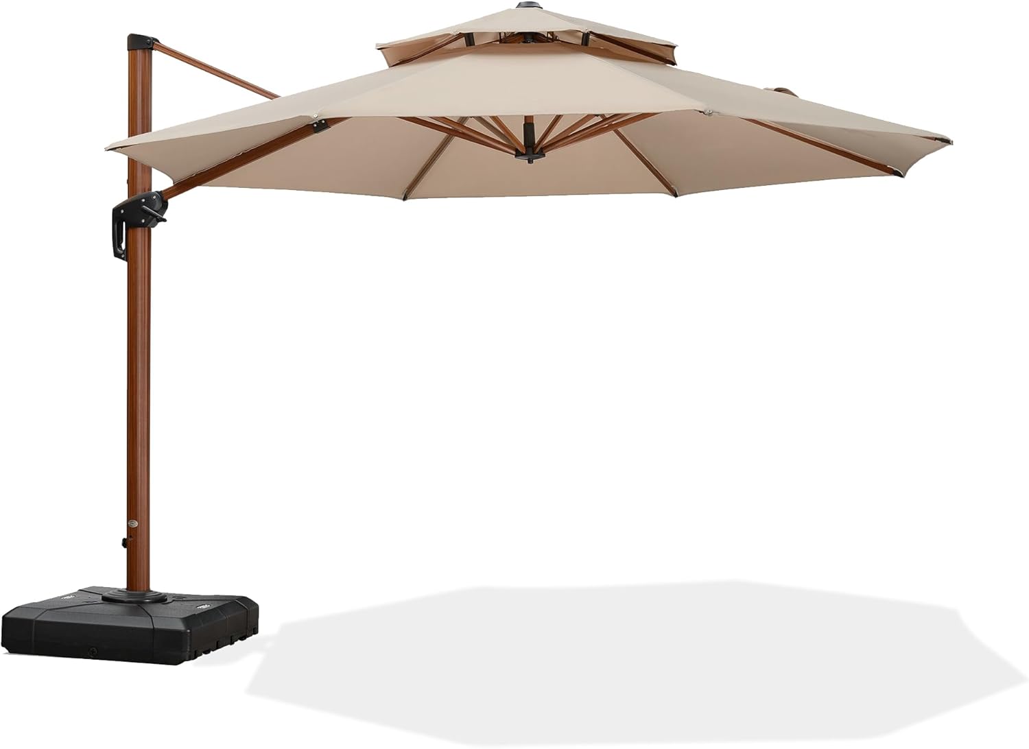 PURPLE LEAF 11ft Patio Umbrella Outdoor Round Umbrellas Large Cantilever Umbrella Windproof Offset Umbrellas Heavy Duty Sun Umbrella for Garden Deck Pool Patio, Beige