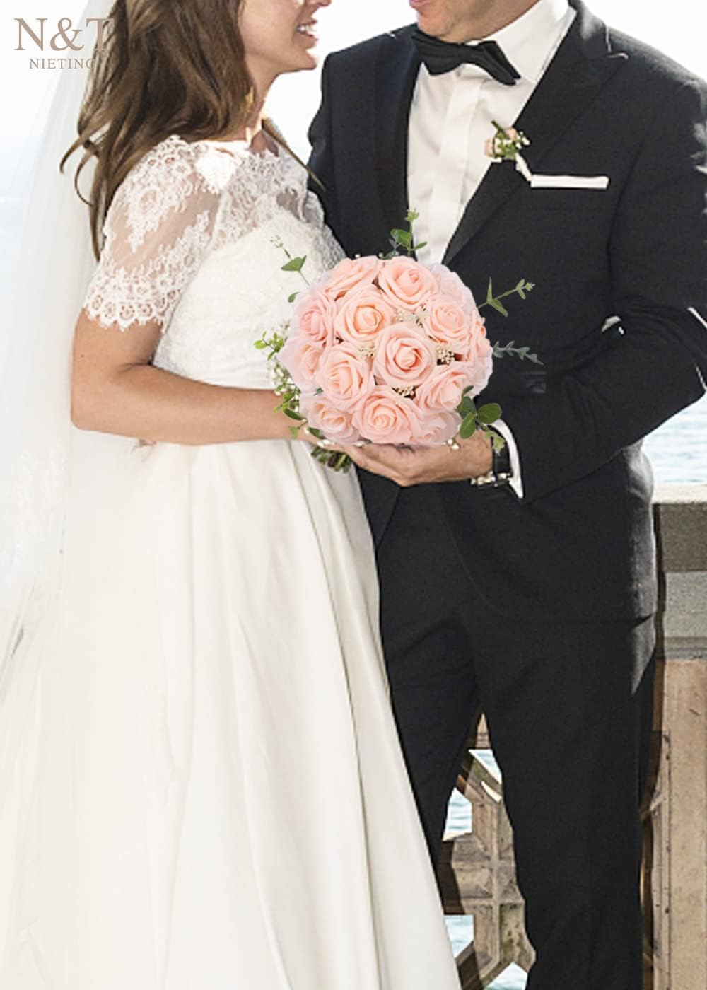 N&T NIETING Artificial Flowers, 25Pcs Fake Flowers Roses Perfect for DIY Wedding Bouquets Centerpieces Bridal Shower Party Home Flower Arrangement Decorations, Blush