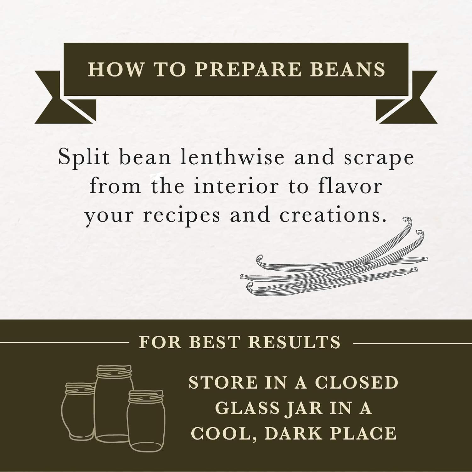 - Suggested Usage: Split bean lengthwise and scrape seeds from the interior to flavor your recipes and creations. Add a pod to infuse your sugar with divine vanilla flavor, or make your own vanilla extract.