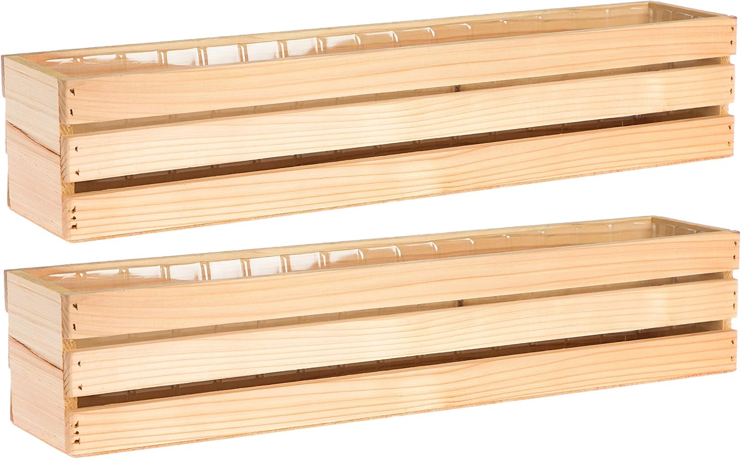 20" Rectangular Rustic Wood Planter with Plastic Liner l Rustic Barn Wood l Wine Crate Style, Home and Wedding Decorations, Garden Ornaments (20x4 Wine Crate Set of 2, Rose Wood)