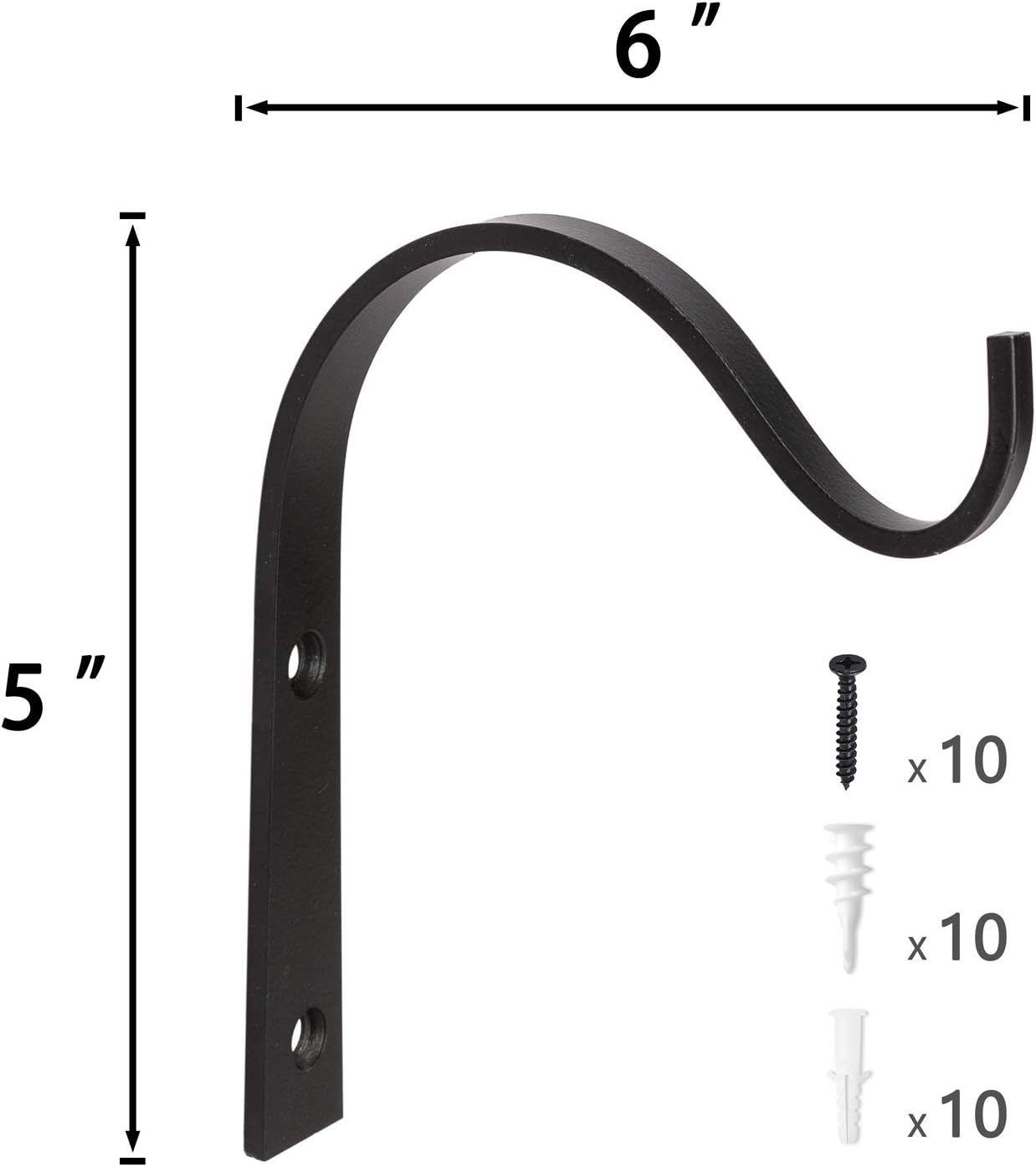 - Solid Construction Material- iron in good craftsmanship, a dark finish stunningly complements anything that hangs from it it will not rust, or melt under heat. There are 4 in a package, including screws.