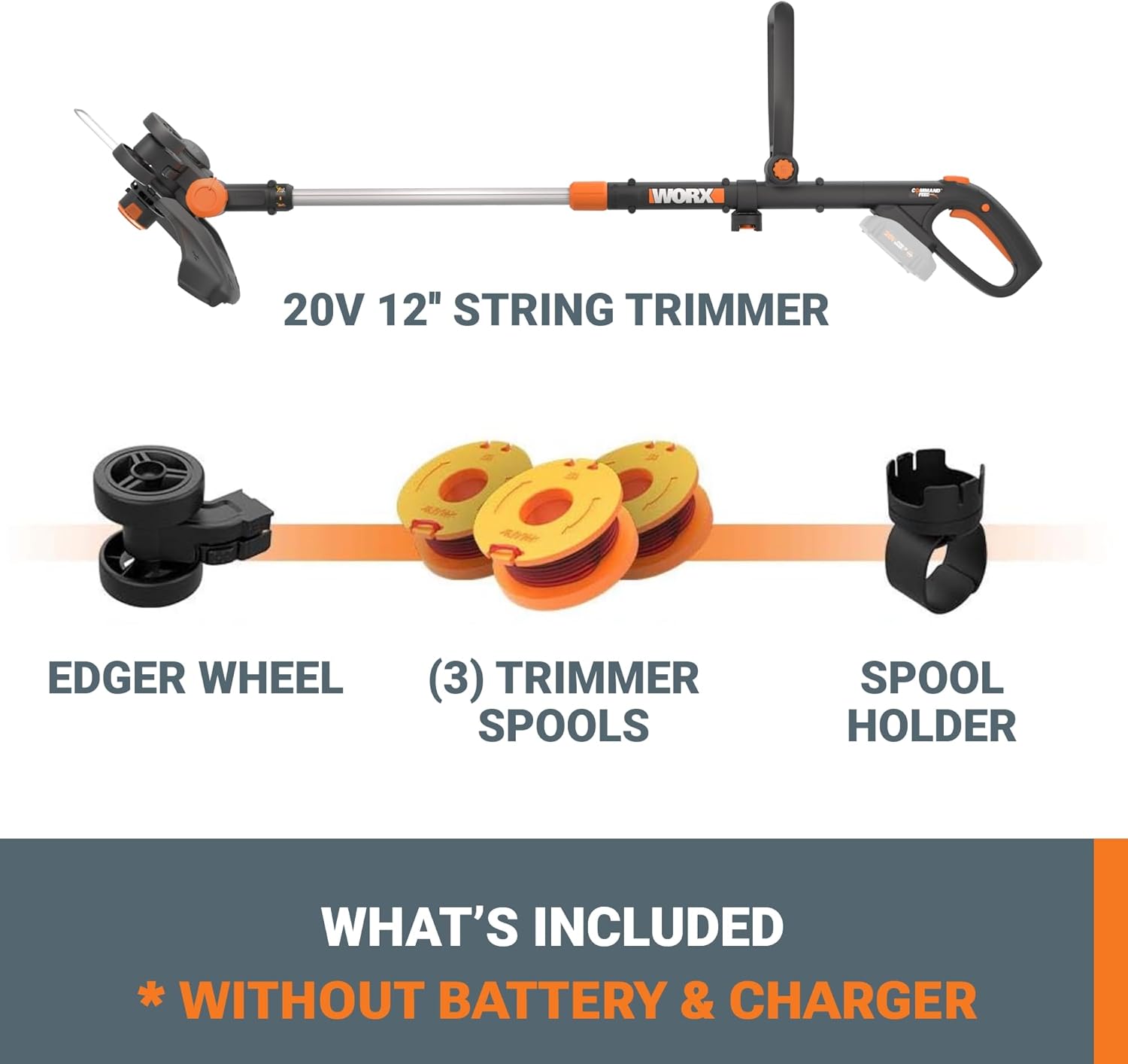 - INCLUDES 20V Trimmer or Edger, 10 Trimmer Spool, Spool Holder, Edger Wheels (Battery and Charger Not Included)