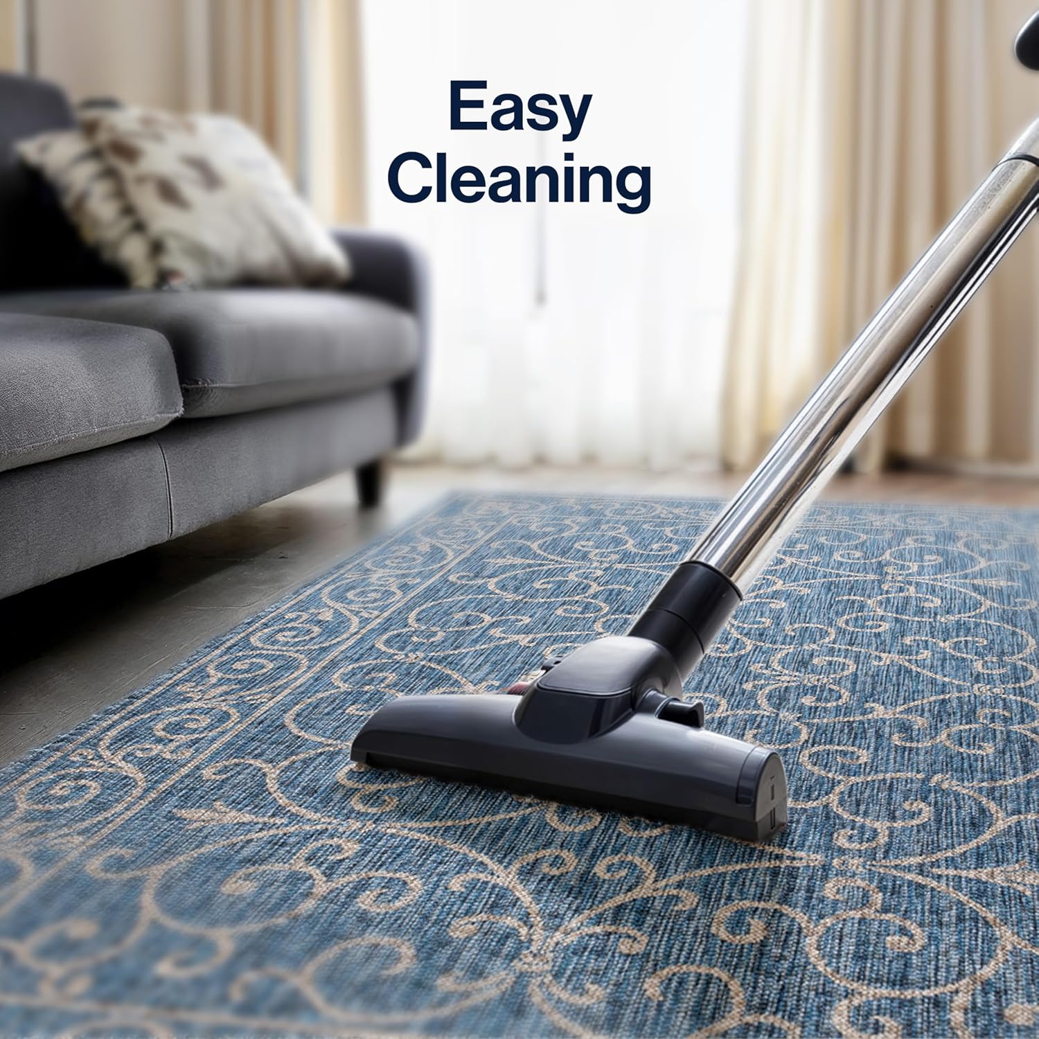 - STAIN-RESISTANT AND PET-FRIENDLY: This rug is made from synthetic fibers that resist UV fading; The pet-friendly low-pile construction wonโt accumulate dirt, and spills clean up easily; Itโs been machine-woven so the rug fibers will stay put