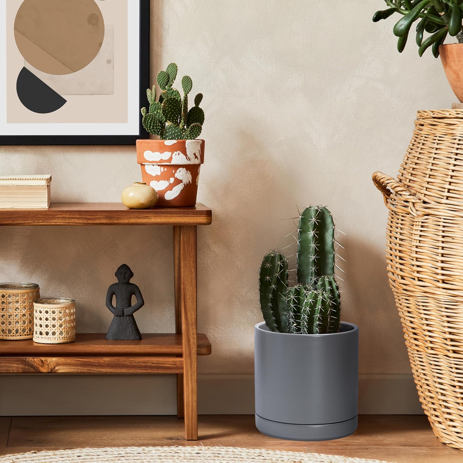 D'vine Dev 6 Inch & 8 Inch & 10 Inch, Set of 3 Round Ceramic Planter Pot with Drainage Hole and Saucer, Grey, 94-T-L-3