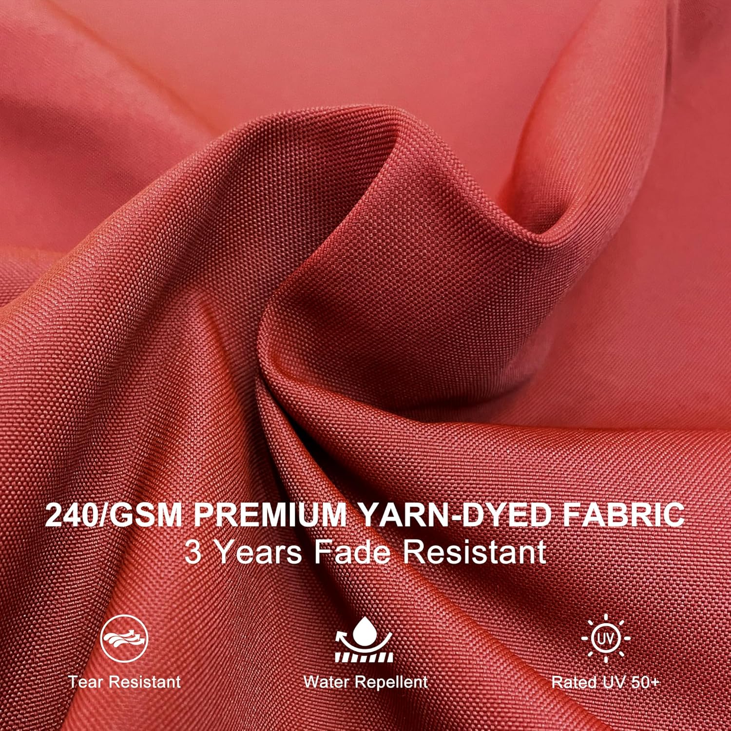 - High quality 240/gsm yarn-dyed polyester fabric, UV resistant, water-repellent and colorfast fadeless