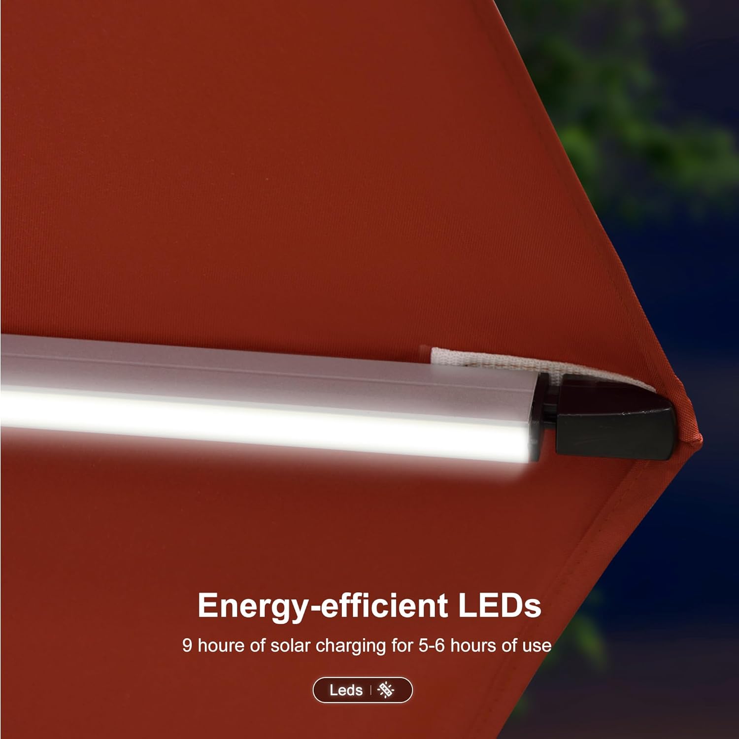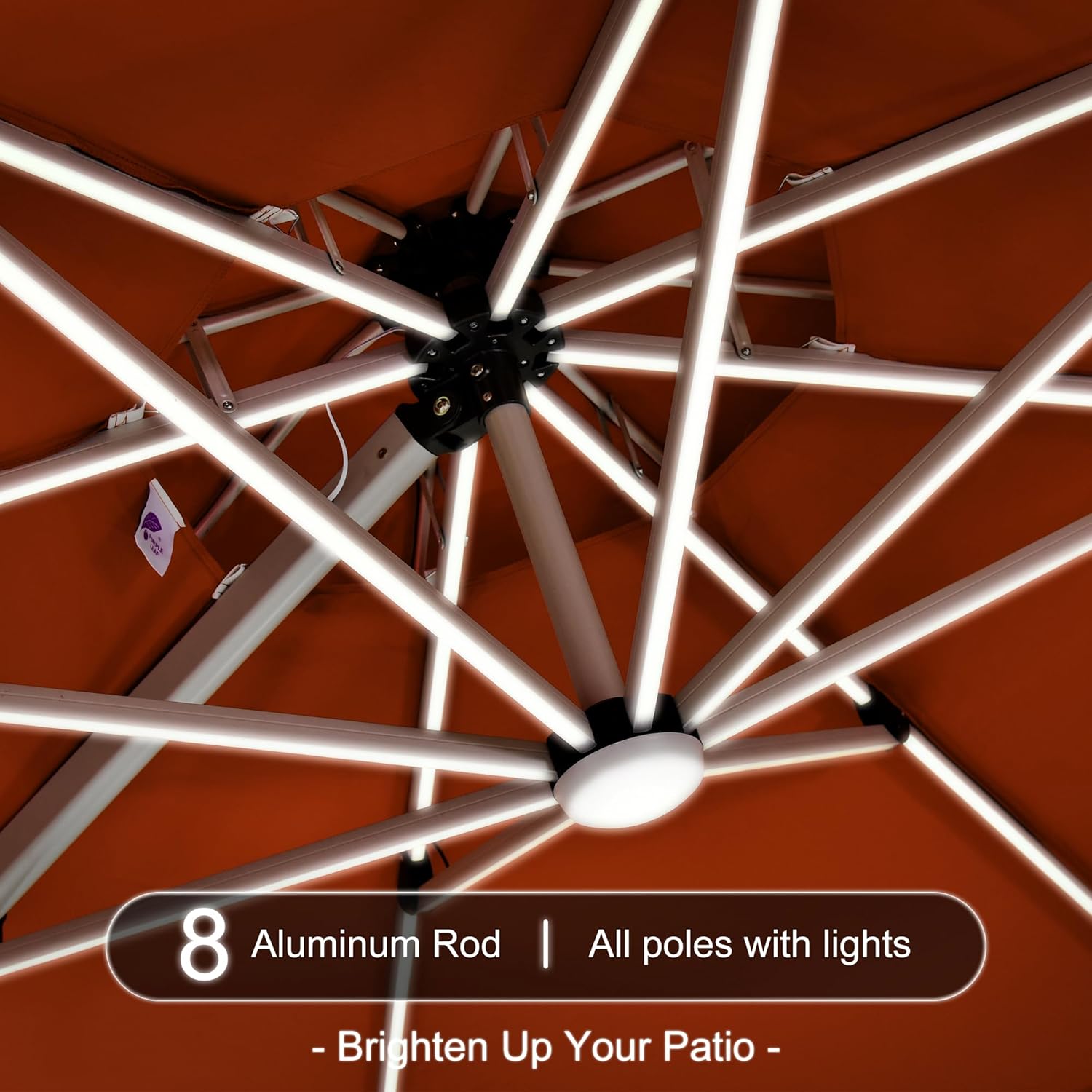 PURPLE LEAF 11ft Solar powered LED Patio Umbrella Outdoor Round Umbrellas Large Cantilever Umbrella with LED lights Windproof Offset Umbrellas Sun Umbrella for Garden Deck Pool Patio, Brick Red