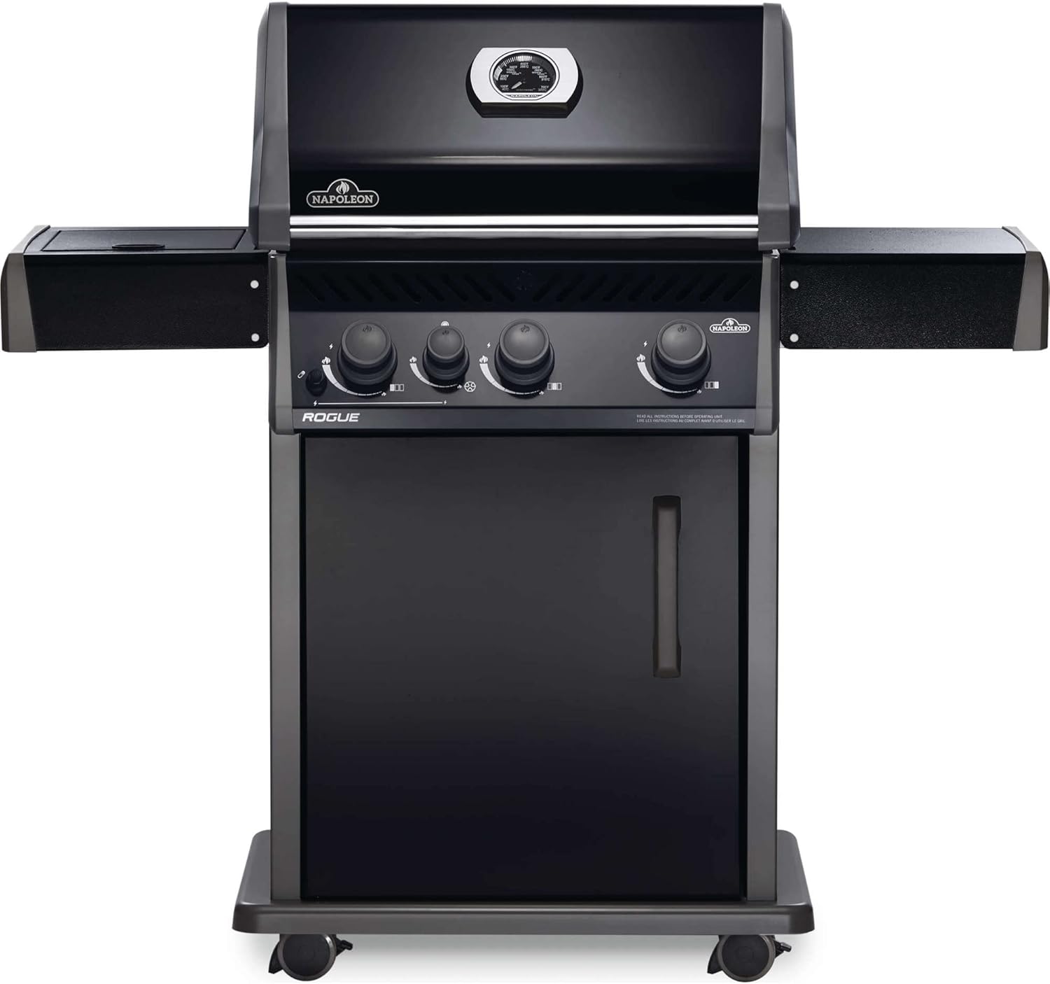 Napoleon Rogue 425 Natural Gas Grill with Range Side Burner, Black, 3 Stainless Steel Main Burners, Durable Heat Control