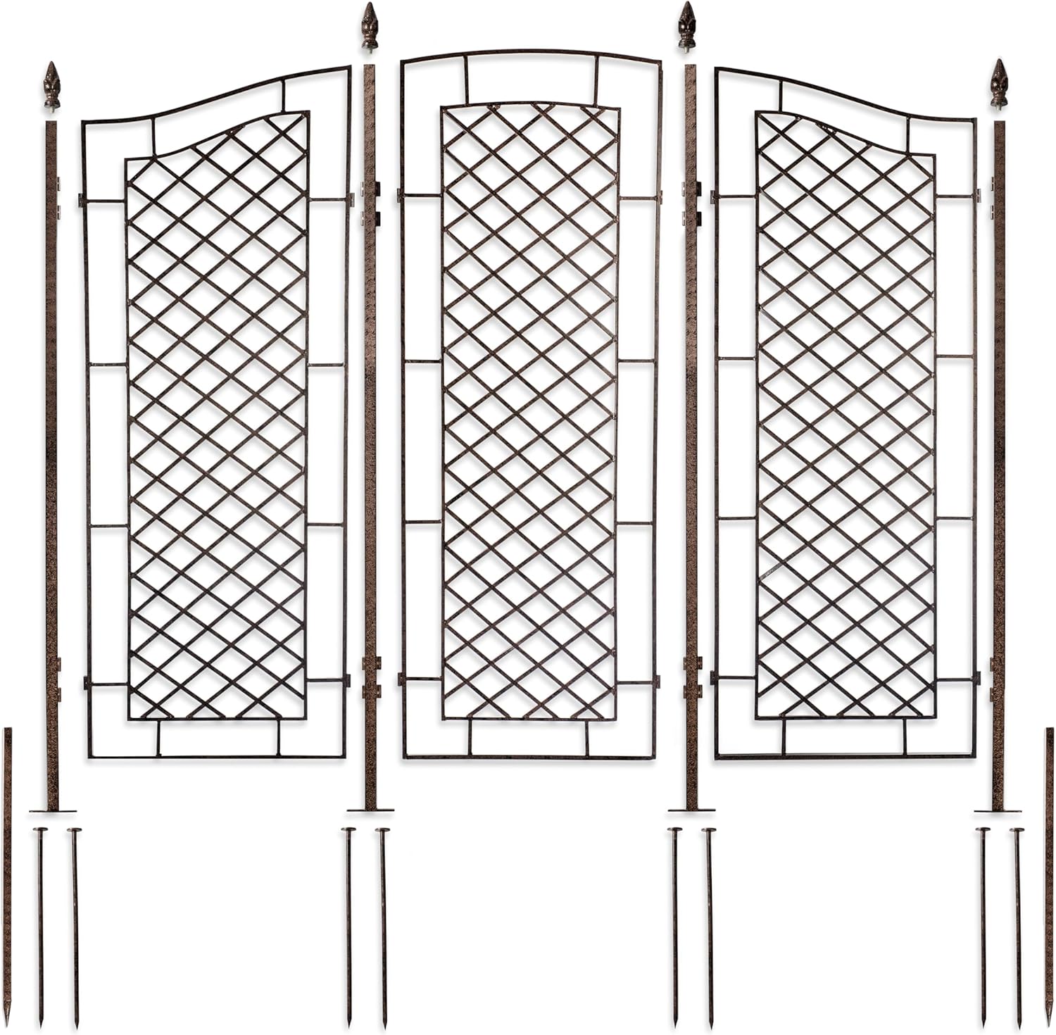 H Potter Large Garden Trellis for Climbing Plants Wrought Iron Metal 3 Panel Ivy Garden Privacy Screen Patio Deck GAR573L