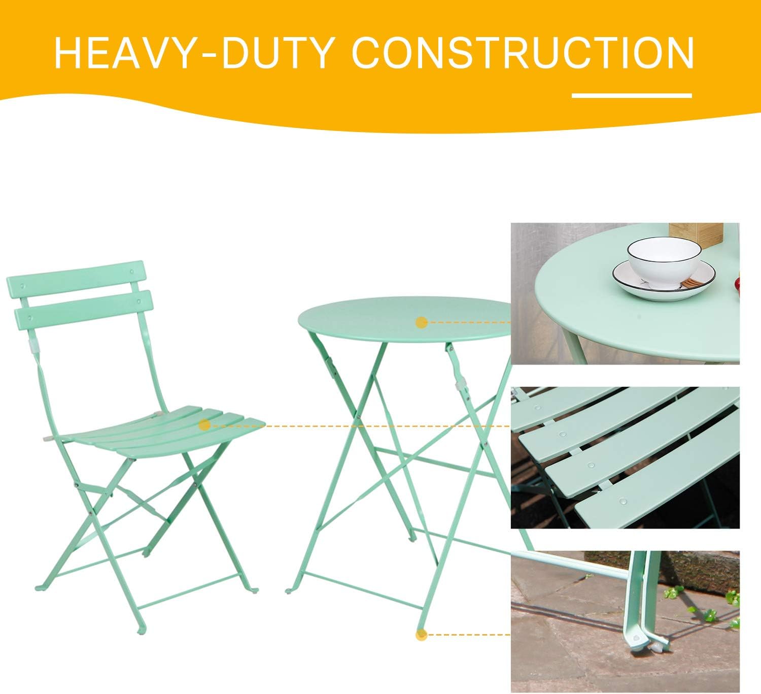 Grand patio 3-Piece Steel Foldable Bistro Set, 2 Chairs and 1 Table, Weather-Resistant Outdoor/Indoor Conversation Set for Patio, Yard, Garden-Macaron Blue