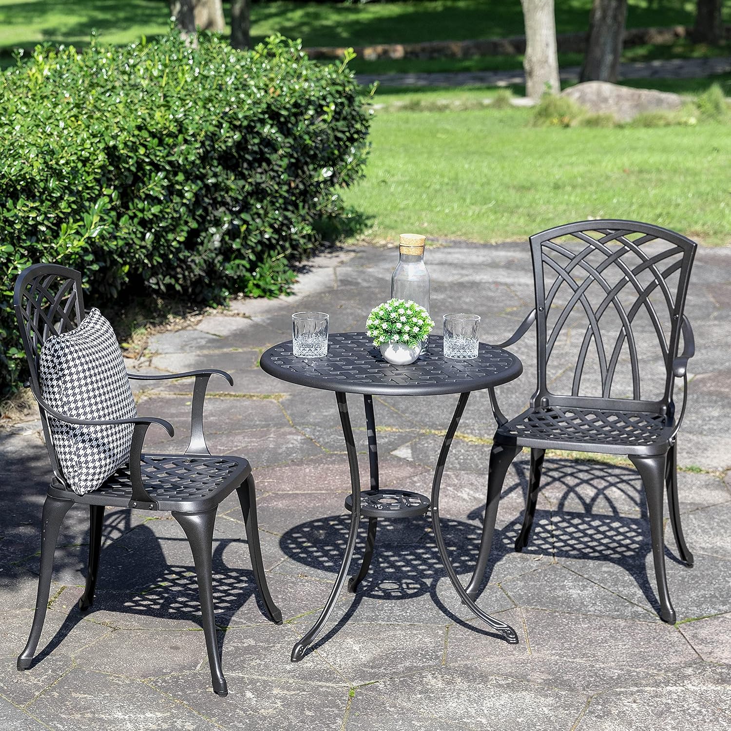 - WHAT YOU GET: Stylish and elegant bistro table set, including 24 inch round dining table and 2 armchairs