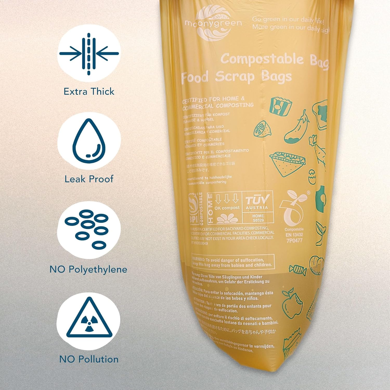 - ★ Moonygreen is one-stop solution for you : Moonygreen food scrap bags are Super-Thick, strong enough for household. The special design offer you ease in tearing off the bags. Non-Toxic feature makes you feel more secure when you use our bags. With Moonygreen, you can get a High-quality experience while protecting our Earth!