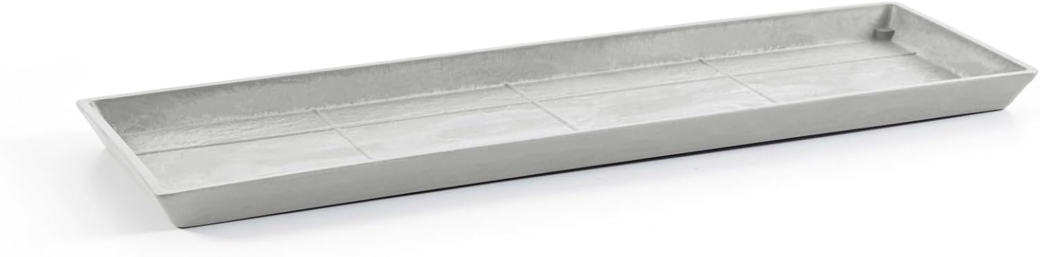 Ecopots Rectangular in/Outdoor Recycled Plastic Planter Flowerpot Saucer, White Grey, 17"