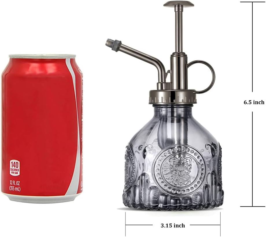 Glass Plant Mister Spray Bottle, Vintage Plant Water Spritzer, Succulent Spray Bottle with Top Pump, Small Glass Sprayer Mister Watering Can for Indoor Outdoor Houseplant - Grey