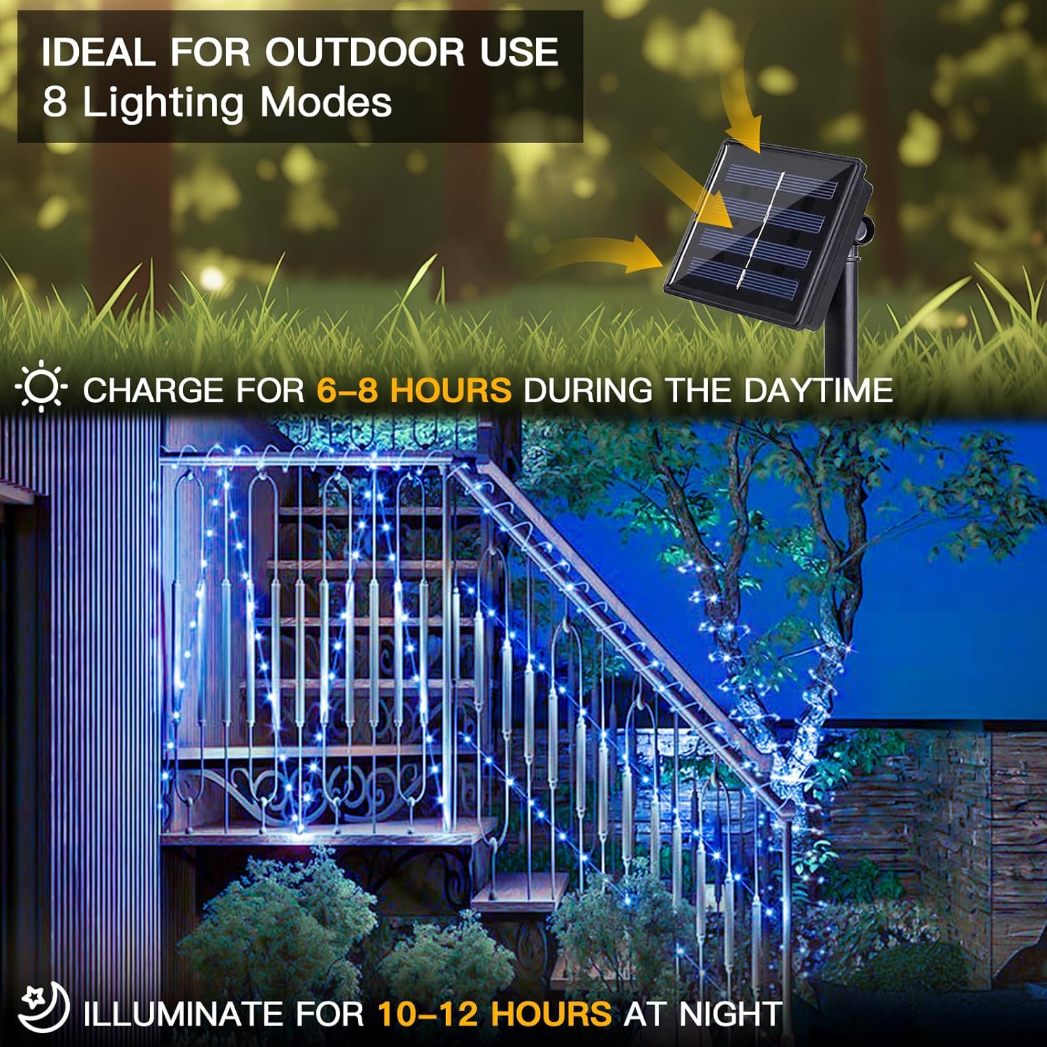 - IP44 WATERPROOF BLUE SOLAR FAIRY LIGHTS OUTDOOR: SUDDUS outdoor waterproof solar string lights can withstand most normal weather conditions year-round. You can touch these fairy lights with no risk of overheating. SUDDUS always provides you with adequate safety.