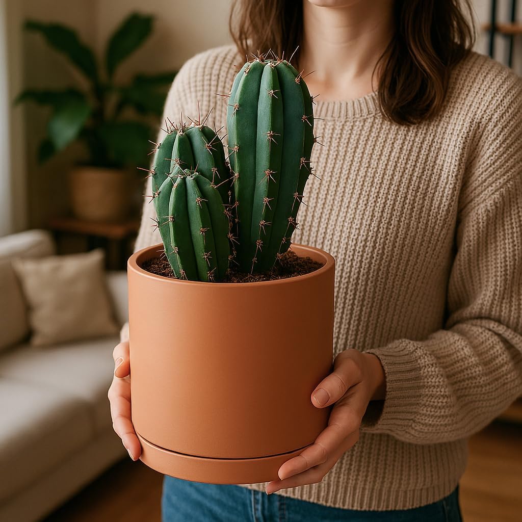D'vine Dev Terracotta Pots for Plants, 6.5 Inch 8.3 Inch 10 Inch, Round Cylinder Planter Pot with Drainage and Saucer, 40-T-C-0