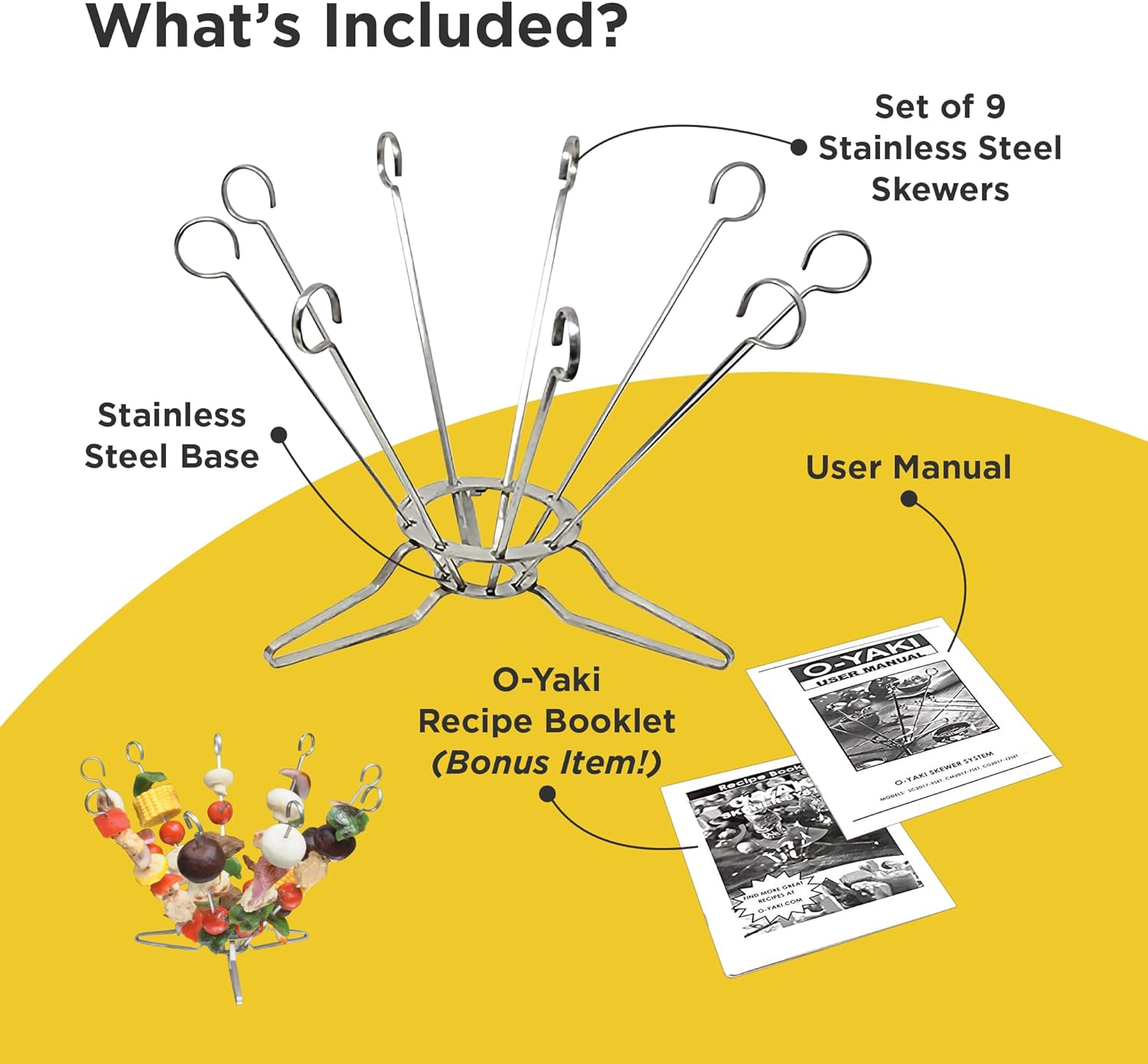 - STAINLESS STEEL BBQ SKEWERS FOR DURABILITY: O-Yaki’s metal skewers are made from durable stainless steel, ensuring they are resistant to rust and can withstand repeated use. These sturdy BBQ skewers won’t bend or break, providing a consistent grilling experience for meats, veggies, seafood, and more.