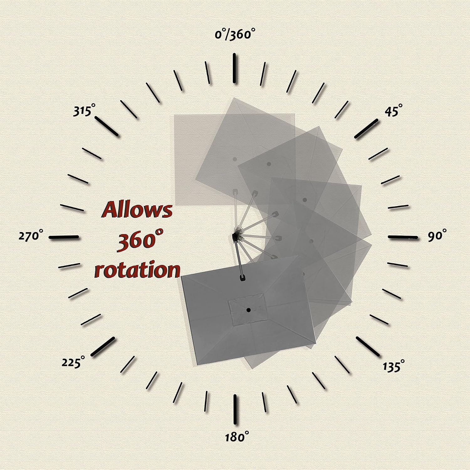 - The crank system of this cantilever umbrella makes it easy to raise and lower the canopy, the unique handle design also makes tilting the umbrella effortless, foot pedal allows for complete 360 degree rotation