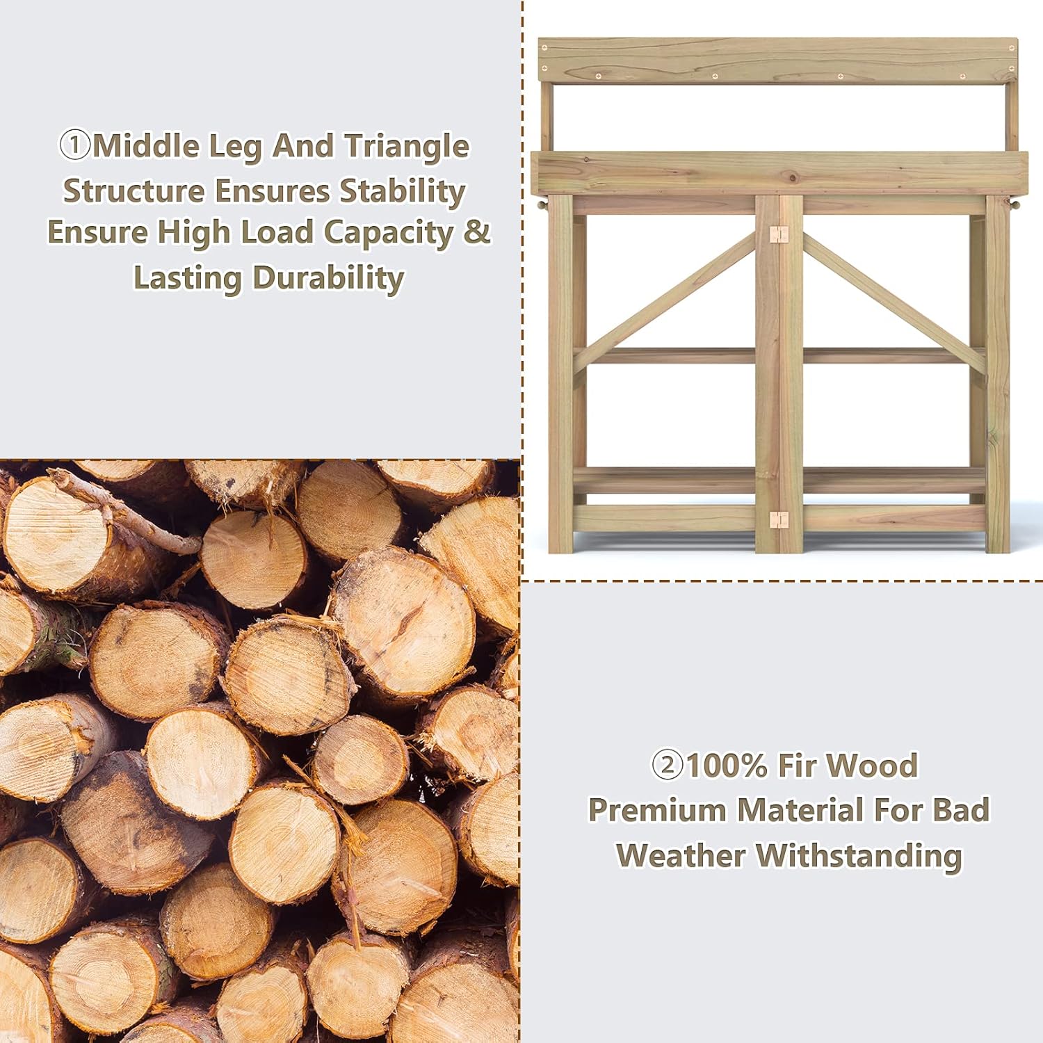- 【Solid & Sturdy Structure】Constructed of natural fir wood coated with waterproof paint, this potting bench is and can serve for a long term. Reinforced wooden bars on the back increase the robustness and stability of the overall structure. Additionally, the screws used for connection are selected and rustproof.
