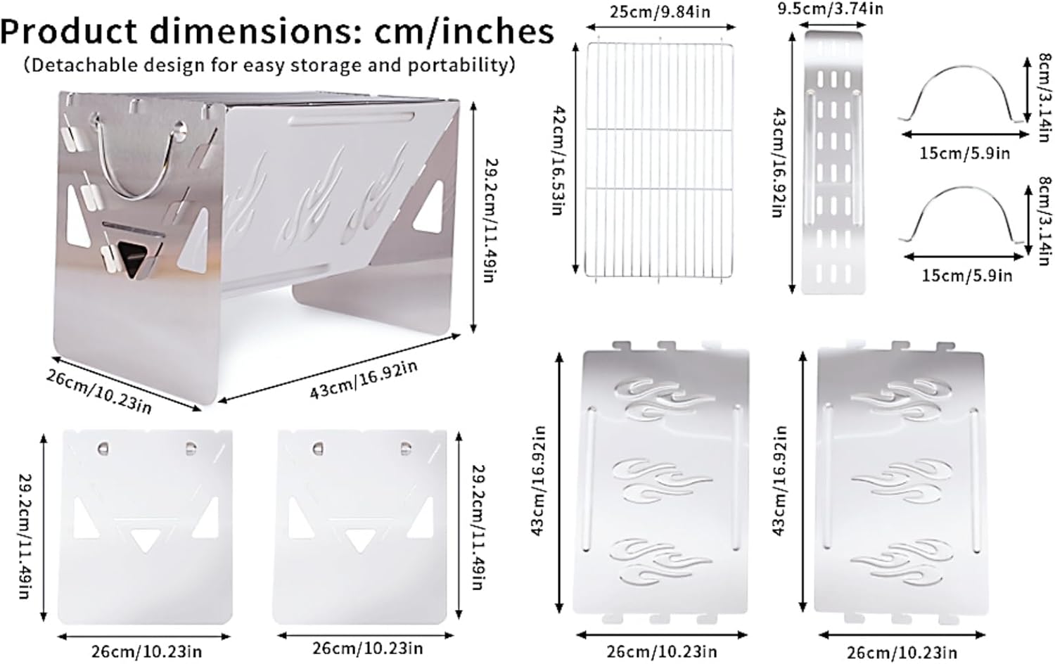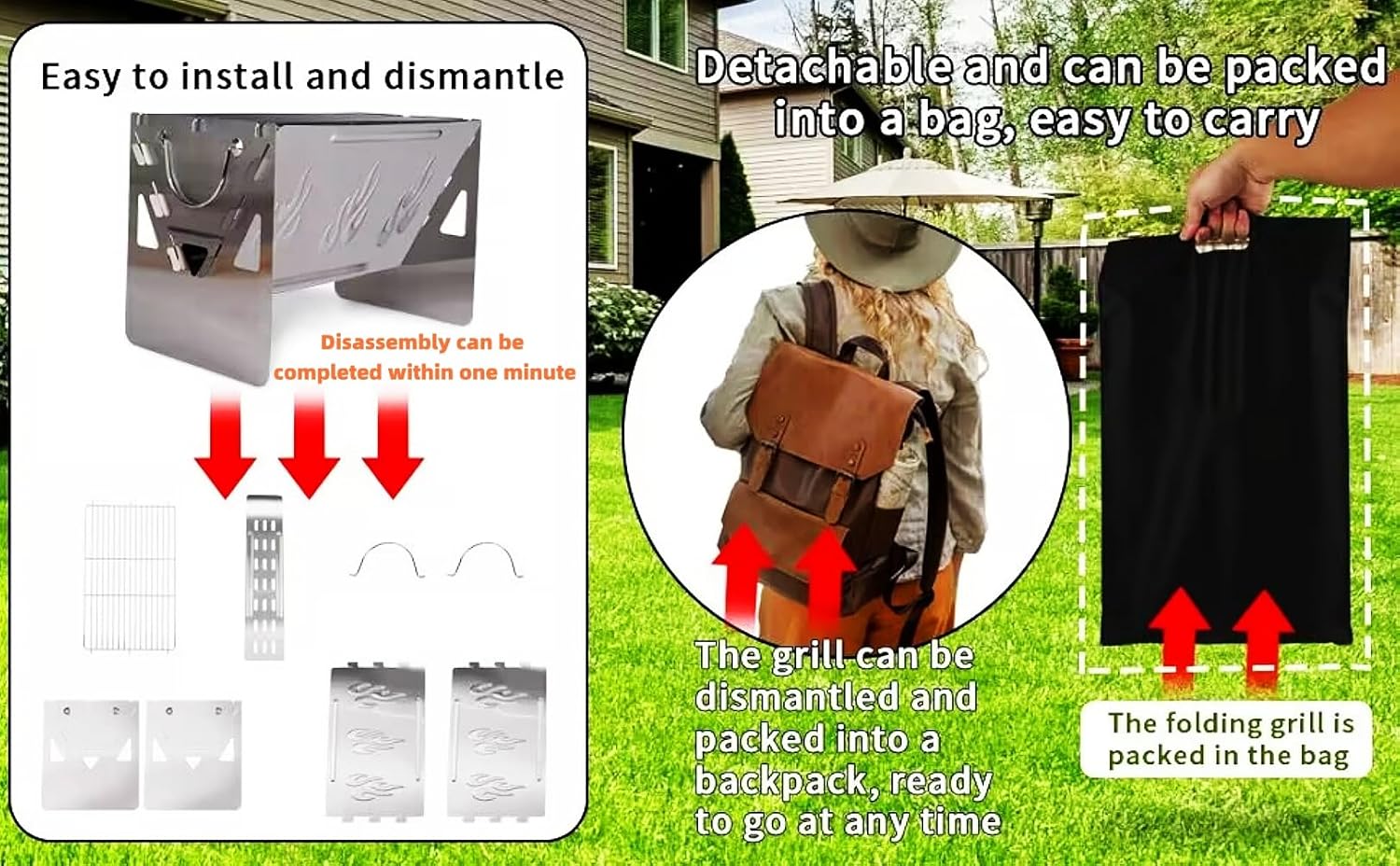 - Ultra-thin foldable portable grill: This product features an innovative design, allowing the grill to be disassembled and packed into a handbag or backpack for easy transport. It's perfect for outdoor beach camping, picnics, and barbecues, and is also an essential cooking grill for RV trips