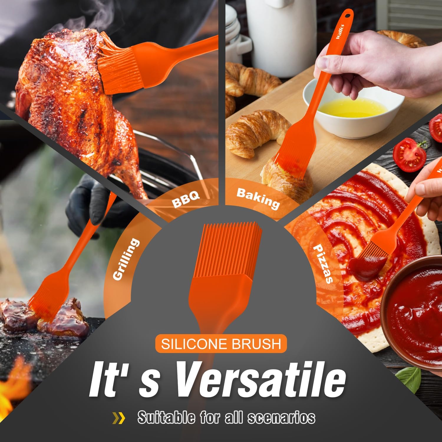 - ★ ONE SIZE FITS MOST & BBQ TOOLS- Walfos BBQ gloves is universal, Included Heat Resistant Silicone Gloves Plus Meat Shredder Claws Plus Silicone Basting Brush,one-size grilling gloves can fit perfectly all men and women. Excellent insulation oven gloves fit large and small hands. Widely used for traeger, turkey fryer, oklahoma joe smoker, fireplace, campfire, pit & barbecue gas grills, camp chef, weber, blackstone, charcoal, pit boss, heavy duty pit & barbecue gas grills & smokers.