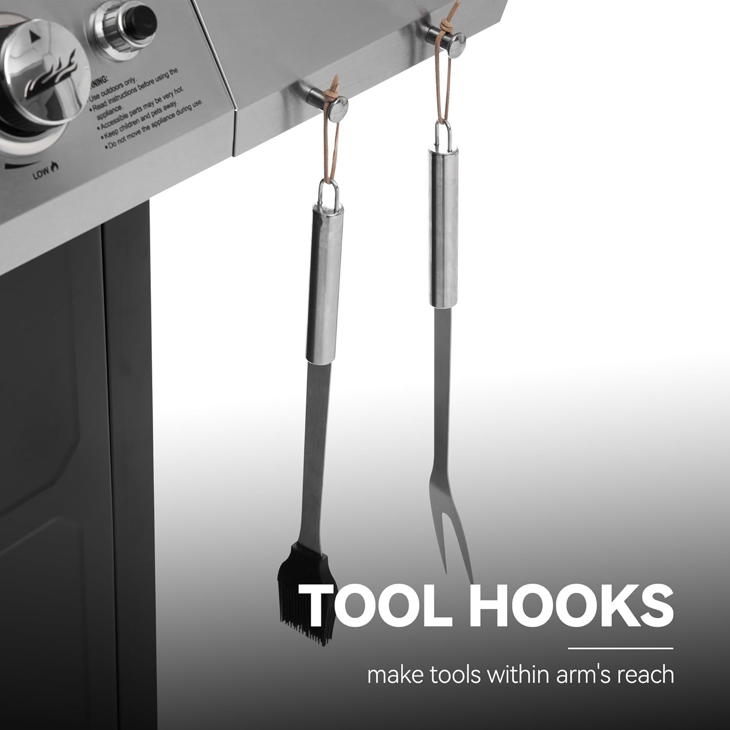 - Stainless Steel Burners: Featuring four stainless steel burners generating 34,000 BTU, each can be independently controlled for management of cooking temperatures across different zones on the grill surface