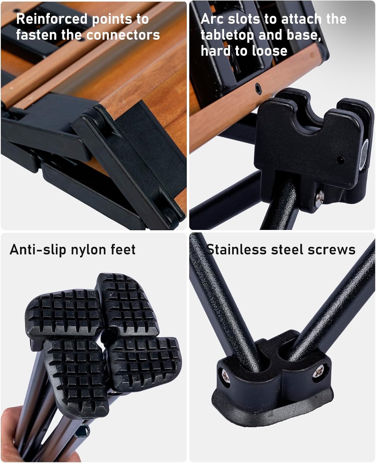 - Ultralight, made of aerospace-grade aluminum alloy, only 3 lbs; Max Load 66 lbs; Unlike wooden or nylon-top tables, this table is durable, waterproof, corrosion-resistant, easy to clean; Sturdy joints and anti-slip feet keep the table stable, with legs that wonโt fold, bend, or slip on any terrain; Very easy to set up, just open the base frame and attach the tabletop, enjoy your leisure time in seconds, video guide available on this page.