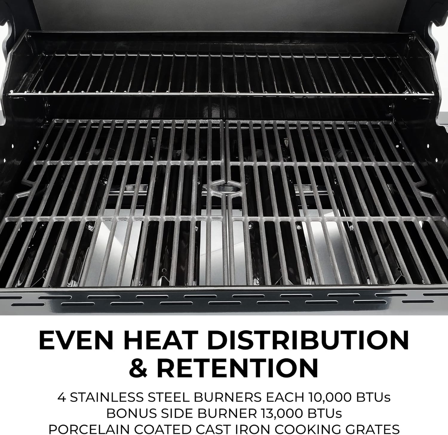 Kenmore 4-Burner Gas Grill with Side Burner, Outdoor BBQ Grill, Propane Gas Grill, Cast Iron Cooking Grates, Electronic Ignition, Warming Rack, Open Cart Design, 53000 BTUs, Stainless Steel and Black