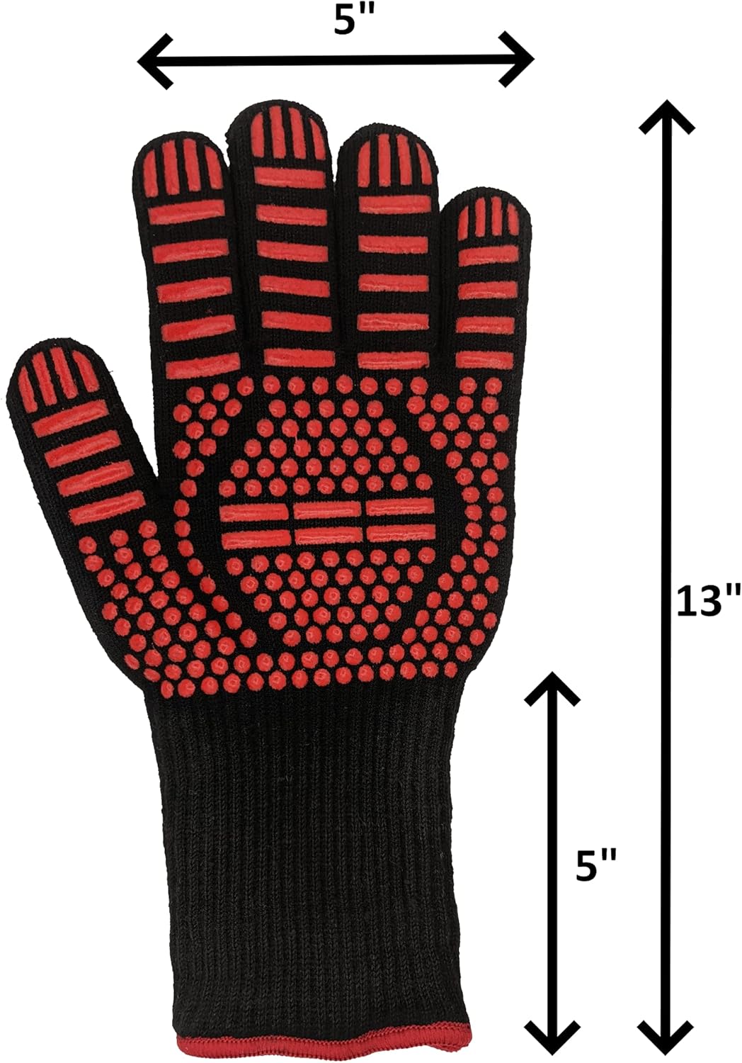 - High heat resistant with non slip silicone grip mitts and oven gloves protect up to 7s at 1472F with aramid stretch fabric and an extra long cuff to protect hands and wrists while handling hot food
