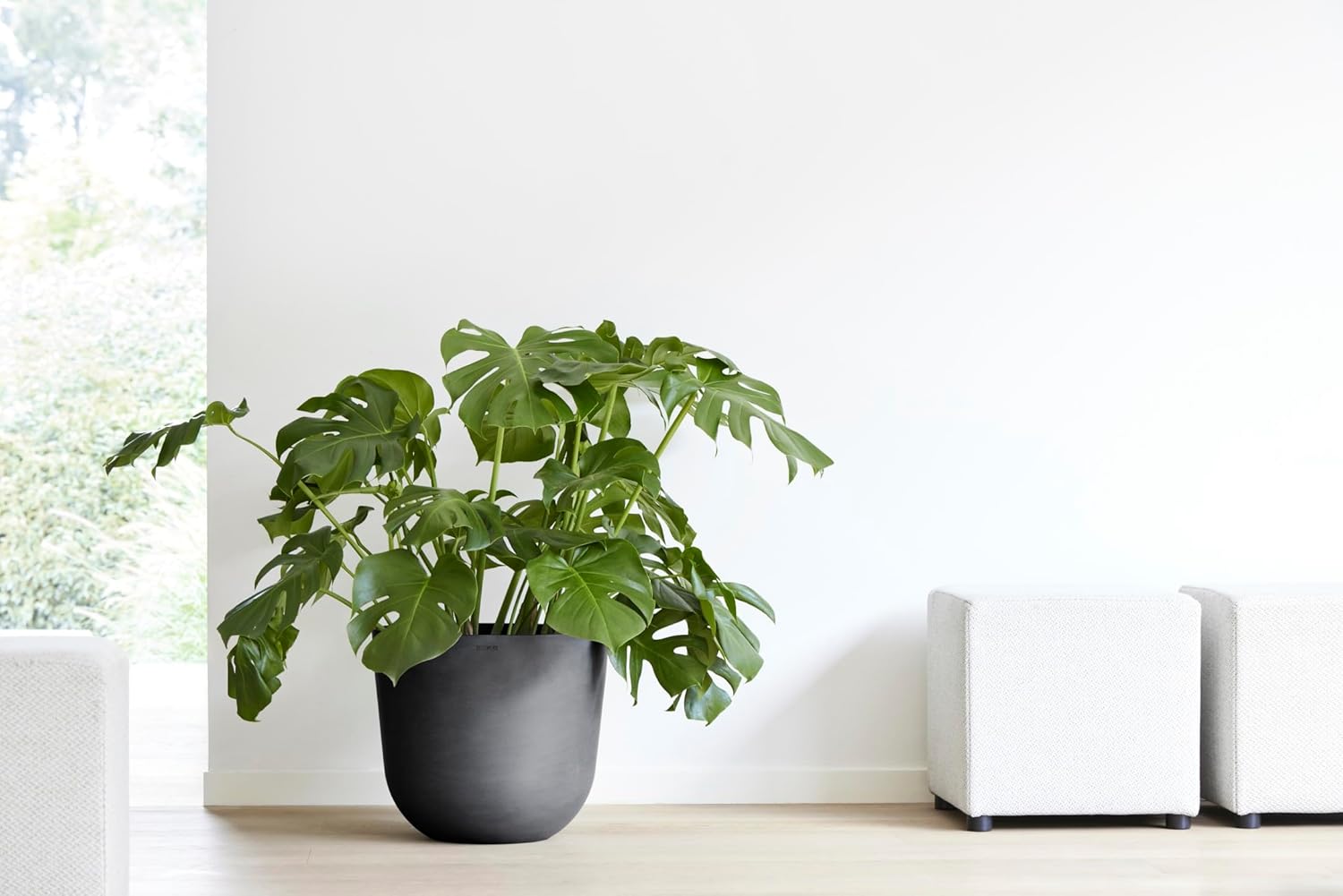 Ecopots Oslo Durable Modern Round Indoor/Outdoor Recycled-Based Composite Flower Pot Planter, Dark Grey, 17.75"