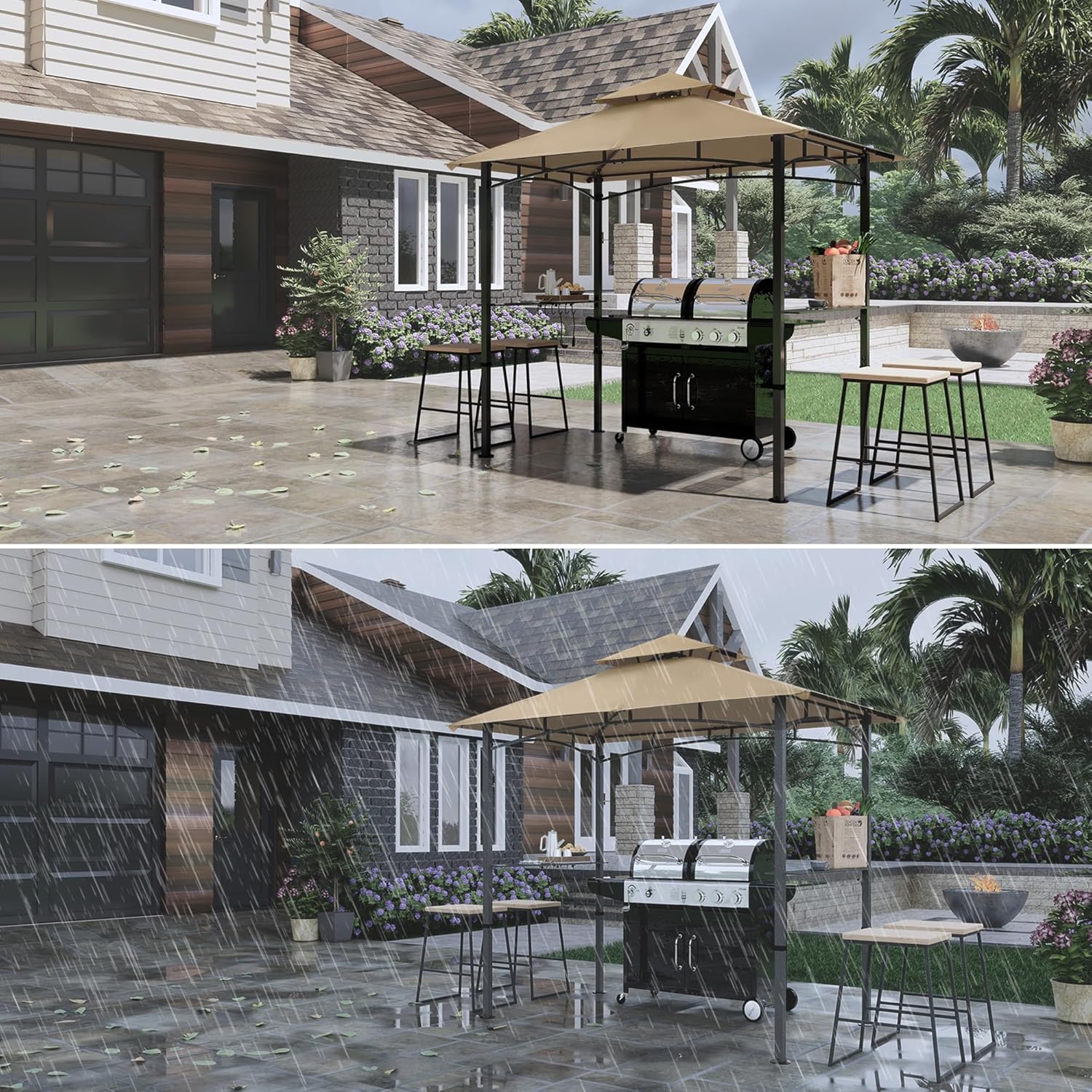 - 【Ideal for Outdoor Grilling】: This grill gazebo creates a perfect spot and patio shade for you to enjoy BBQ party and cooking with 8' x 5' large footprint in the backyard.