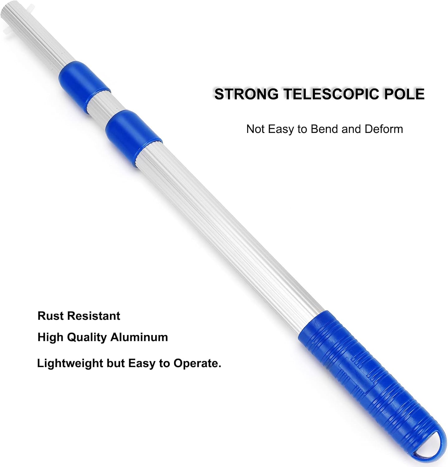 - STRONG TELESCOPIC POLE - High quality adjustable telescopic aluminium pool, not easy to bend and deform. The shortest size of pole is 17 inches and the longest is 40 inches. This cleaning tool is essential for smaller above ground pools or quick spot skimming any size pool.