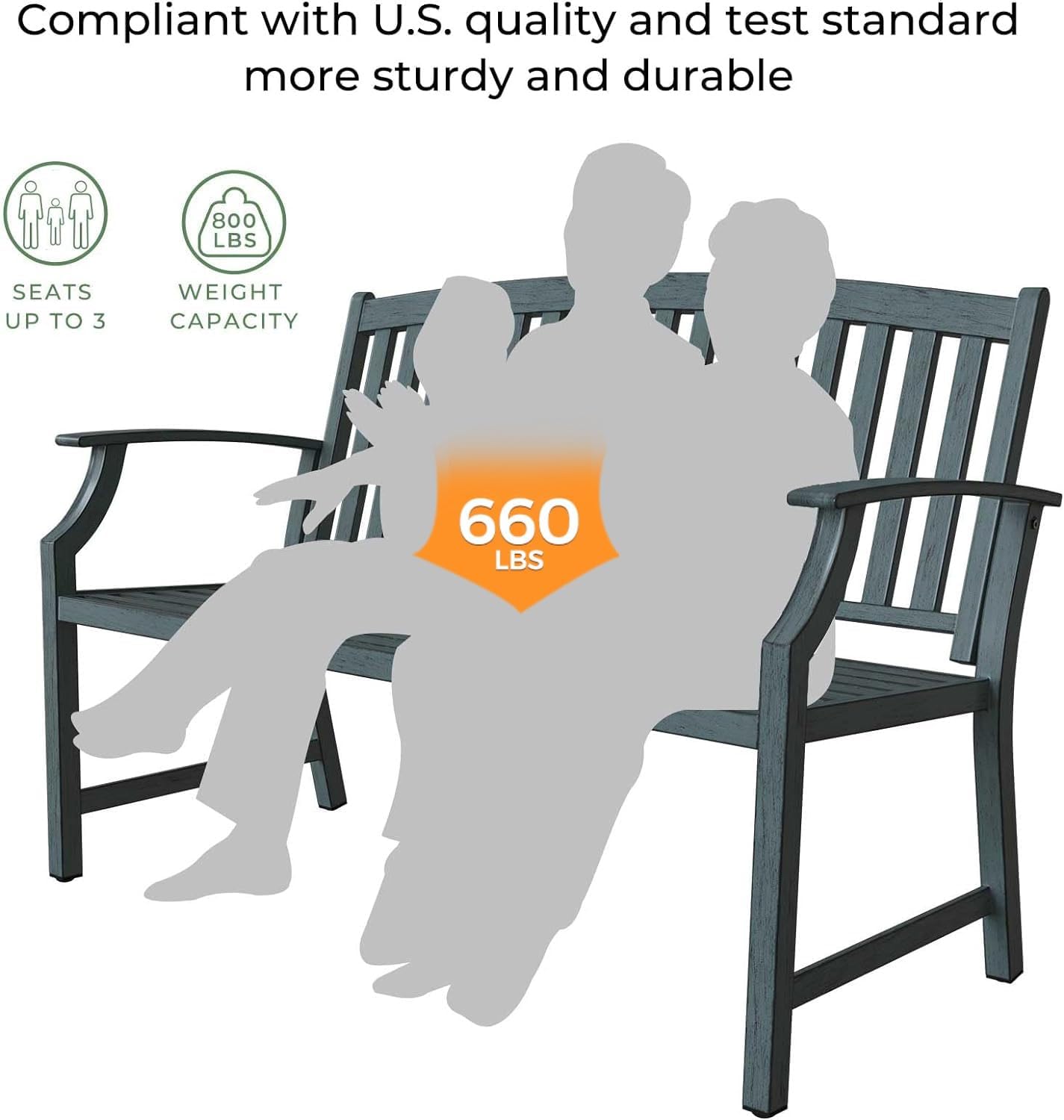 - 【STURDY STRUCTURE】This metal frame of outside bench provide thickened iron pipes and aluminum back and seat that have better strength, can hold up to 660 Pounds. The package is also reinforced to minimise scratches and paint loss on the bench during transport