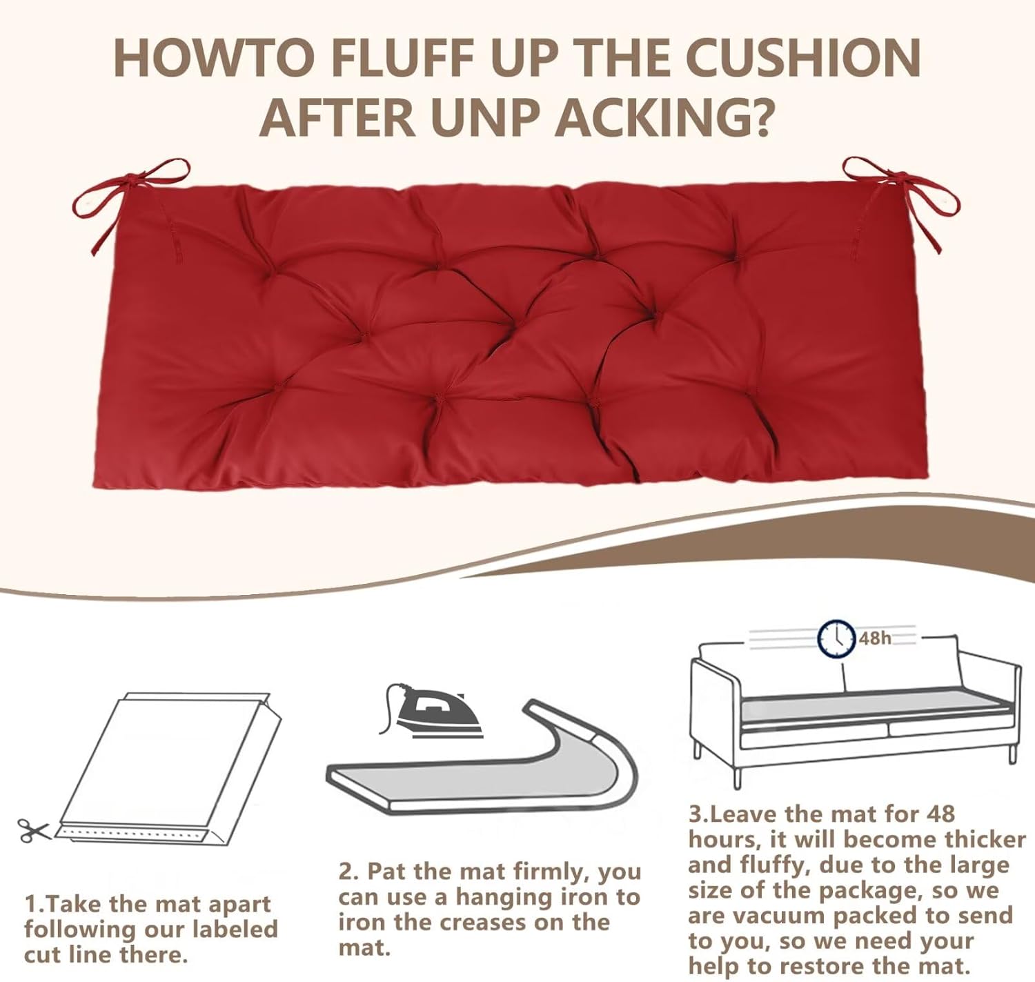 47.3 in Waterproof Indoor/Outdoor Garden Bench Seat Cushions,Thicken Patio Bench Soft Rocking Chairs Pad Lounger Seat for Wicker Loveseat Settee(47.3 X 19.6 X 3.9 inch,Red )