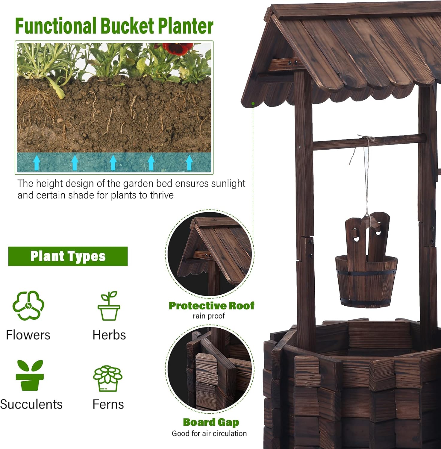 Garden Wooden Decor Rustic Wishing Well Planter Outdoor Home Décor for Patio, Upgrade Wishing Well Garden, Yard Hanging Bucket Patio Lawn Backyard Home Decor