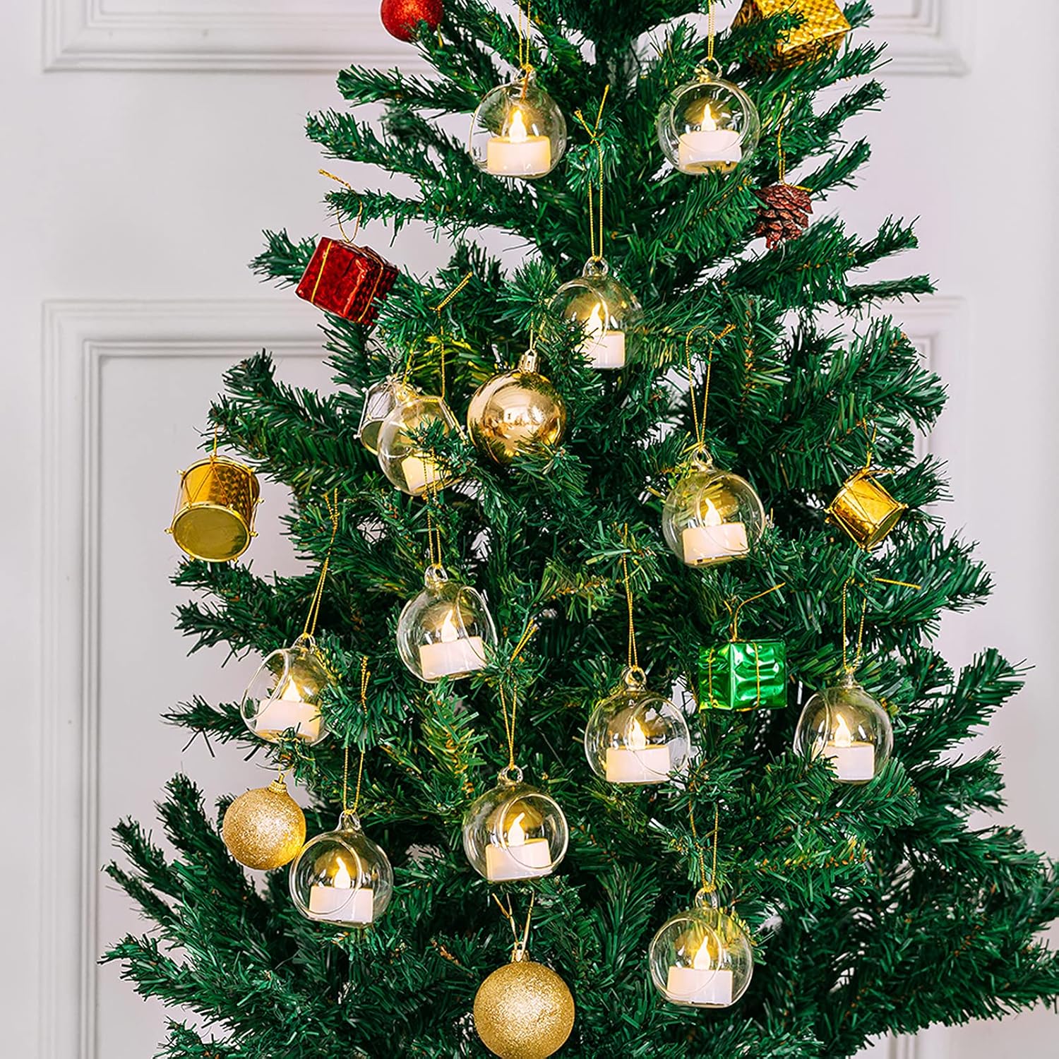 Nuptio 24 Pcs Hanging Glass Tealight Holder Globe 2.36" Diameter, Tea Light Candle Holders Wedding Christmas Halloween Home DIY Gifts, Garden Hanging Ornaments Outdoor Candle Holders