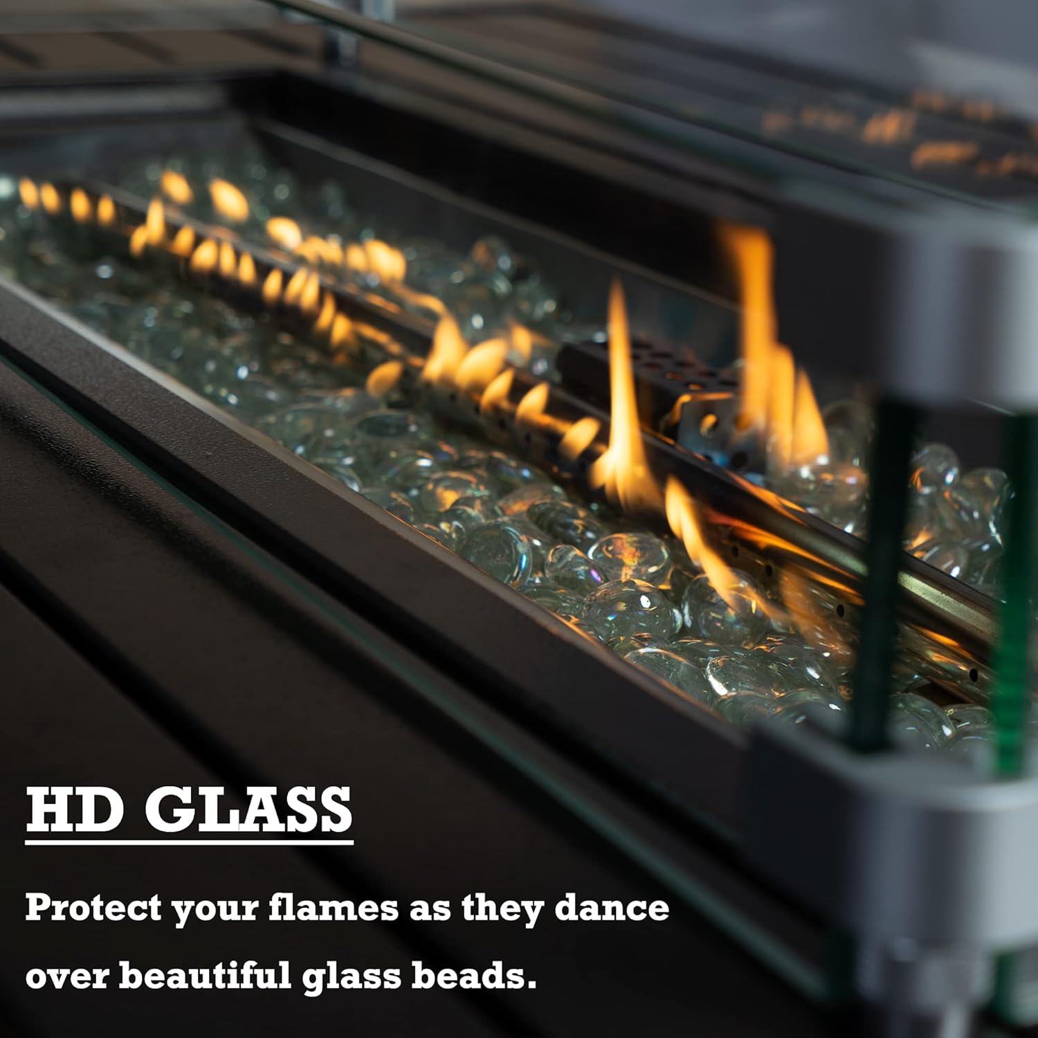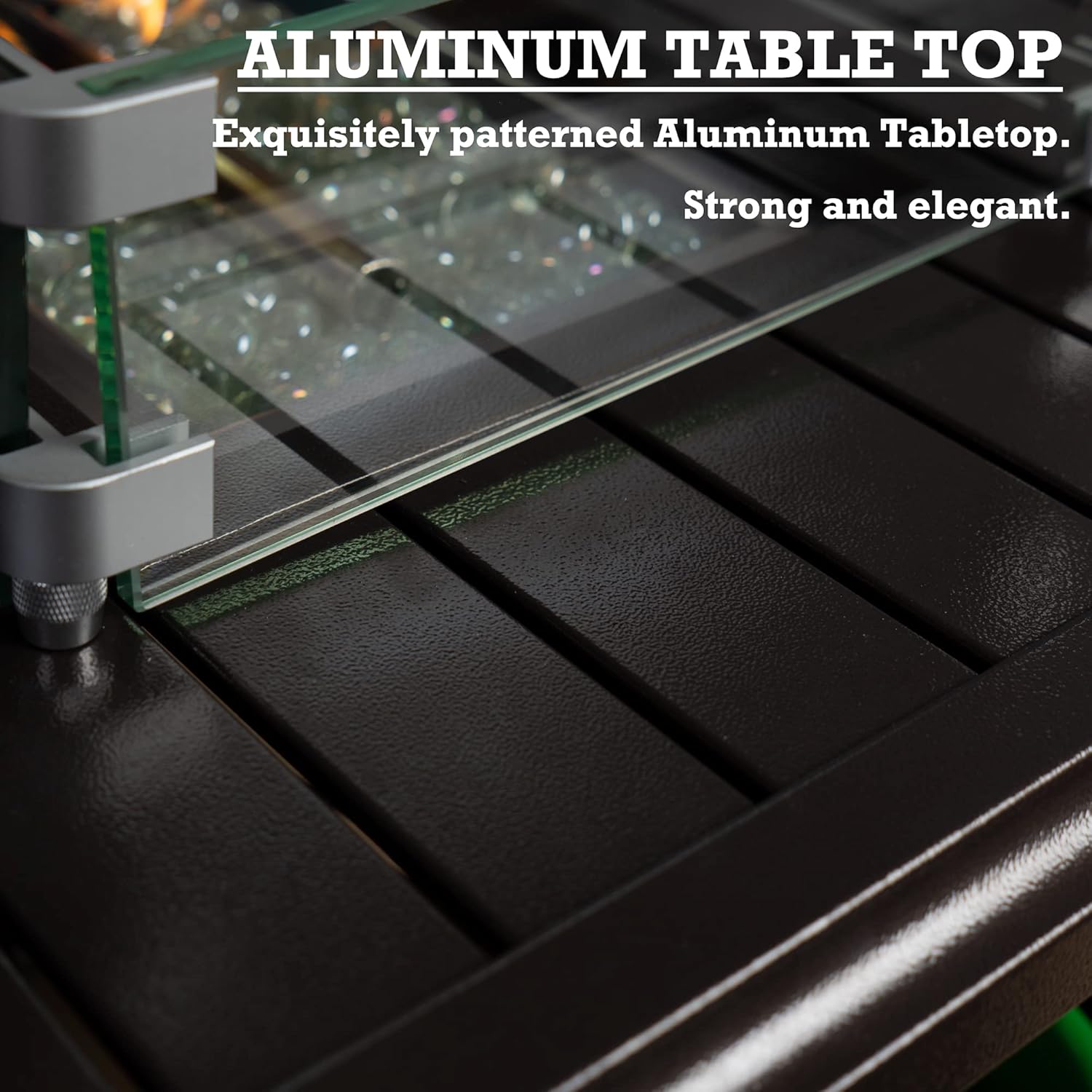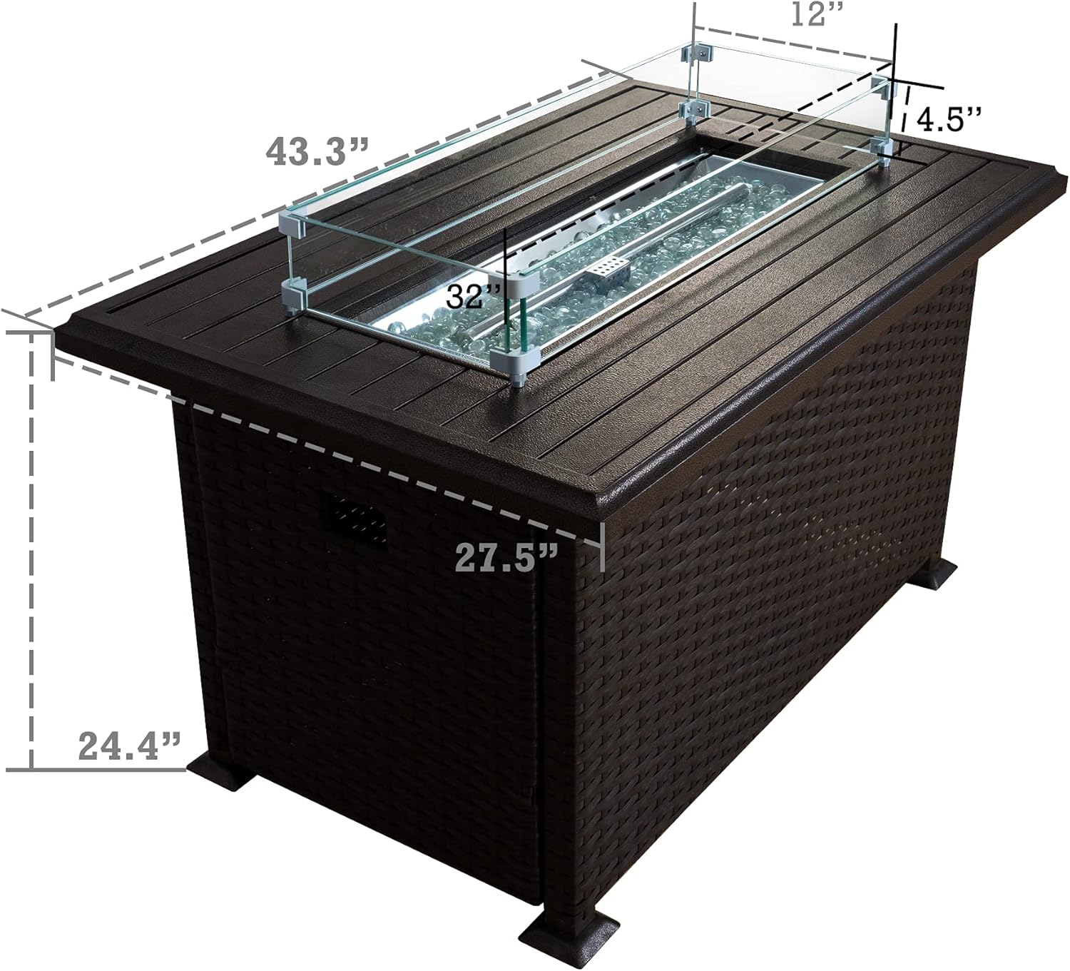 - ✅Aluminum Tabletop & Glass Wind Guard - The fire pit table features an aluminum tabletop and a glass wind guard for added safety and convenience.
