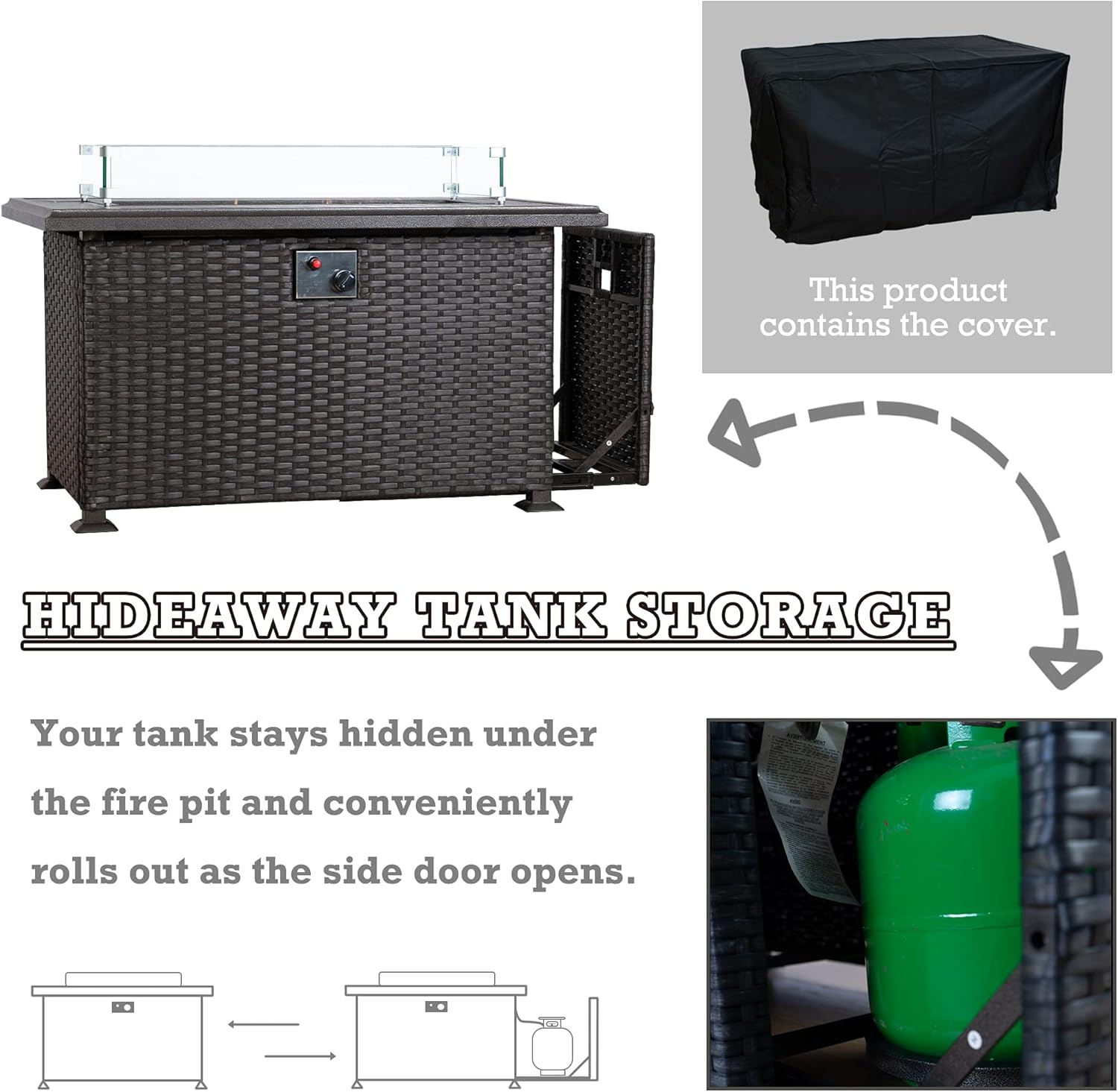 - ✅ Slide Out Tank Holder - The patio fire pit table has a slide-out tank holder, making it easy to change the propane tank when needed.