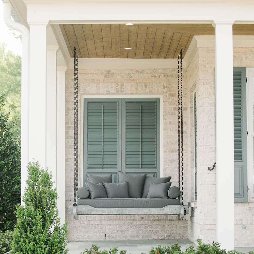 - GRADE A TEAK TWIN PORCH SWING BED: The Porch Swing Bed features a generously sized 63" x 25" cushion with 6" of plush comfort. With six rectangular pillows, two round ones, and four square pillows, it is the ultimate spot to kick back, unwind, and let the day drift away.