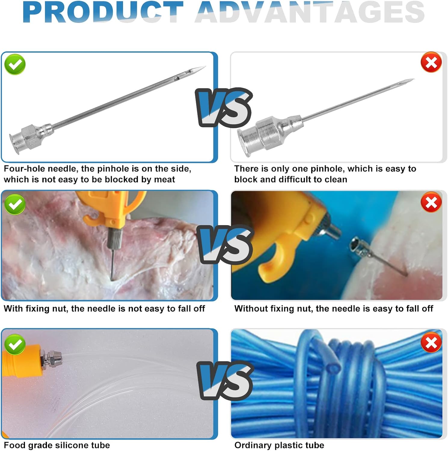 - [Deep Flavor Penetration]: Equipped with 304 stainless steel four-way injection needle that effortlessly penetrates thick cuts of meat (Note: Use thawed meat, not frozen), ensuring marinade distribution from the core to the surface for juicy, restaurant-quality results (Tip: Filter marinade to prevent particle clogging)