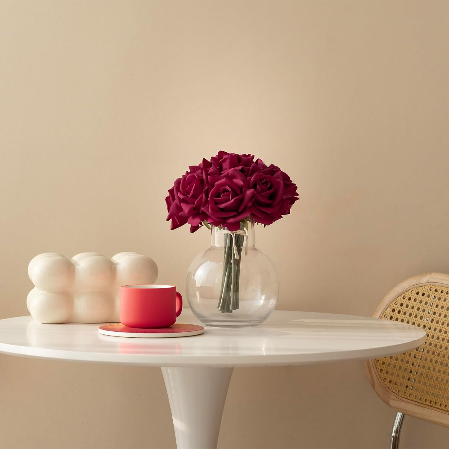- [Application] Our fake rose bouquet is consisted of 10pcs single stem, which is perfectly suitable for a normal middle size flower vase. Exquisite appearance make it a good choice to be table flower and bridal bouquet.